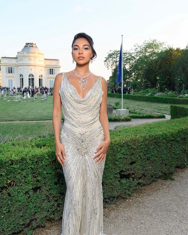سلمي أبو ضيف تستعرض أنوثتها بالأبيض المرصع بالألماس