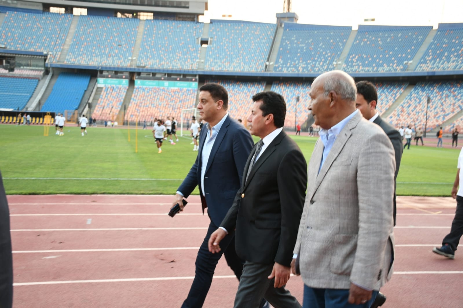 جاء ذلك خلال زيارة وزير الرياضة، مساء اليوم، بدعم ومؤازرة لاعبي المنتخب الوطني والجهاز الفني، بمعسكرهم التدريبي استعداداً لمباراة غينيا في تصفيات أمم أفريقيا، وذلك علي هامش تدريب المنتخب الوطني باستاد القاهرة الدولي.