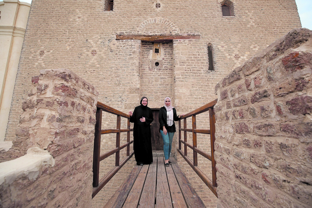 زارت «الوفد» واحداً من أبرز الآثار القبطية الموجودة بهذا الدير العريق، وهو «الحصن الأثرى» الذى يحمل بين جدرانه تاريخاً عظيماً ويروى الأب الراهب لعازر المحرقى، كيف فكر وصمم الآباء الرهبان هذا المبنى الذى عكس قدرتهم وإبداعهم فى أحلك الظروف عبر التاريخ.