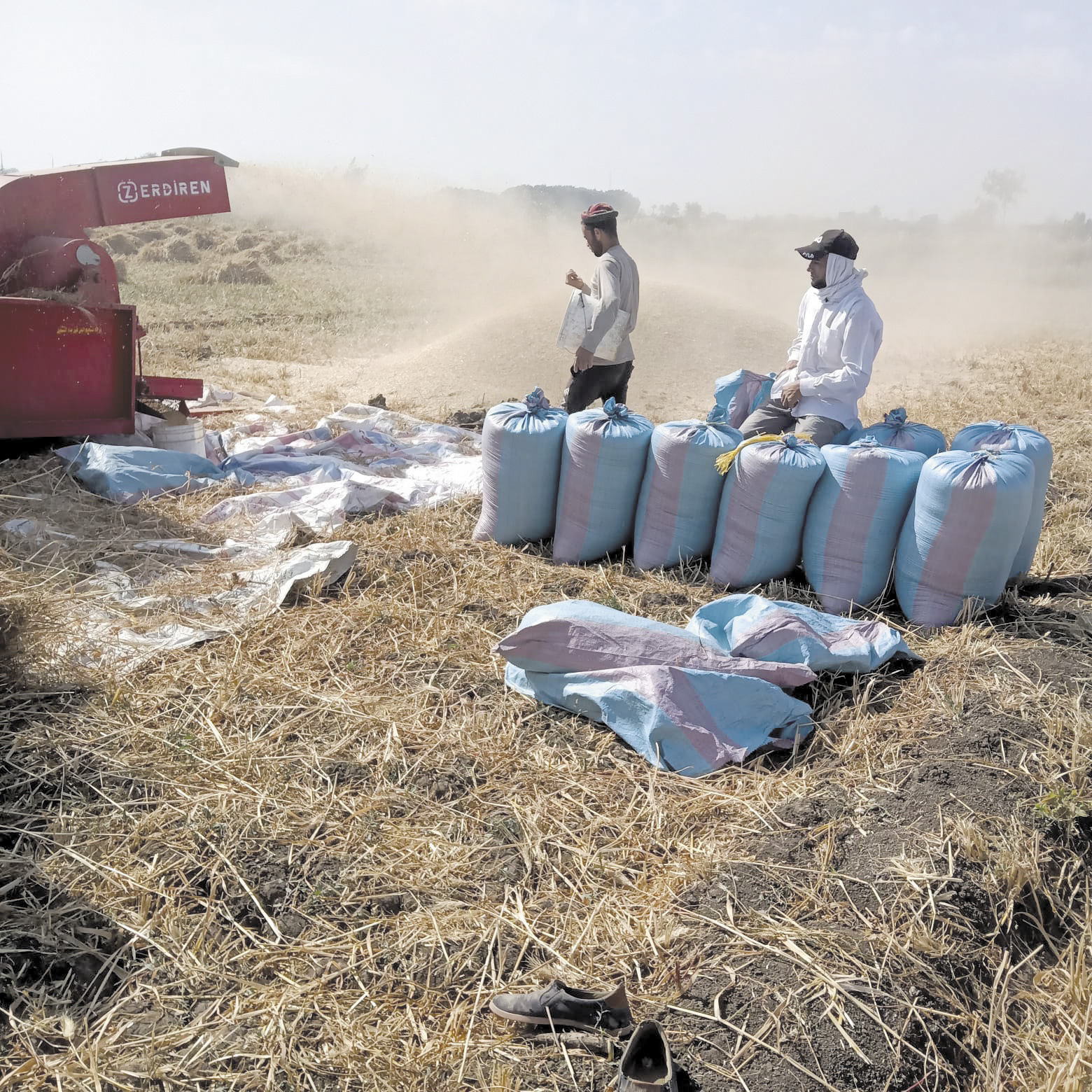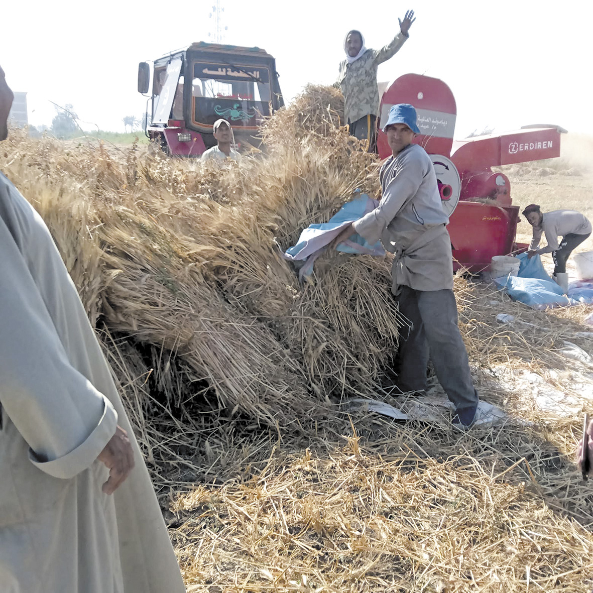 فى أحد حقول القمح، بإحدى قرى مركز العياط، أقصى محافظة الجيزة، التقت الوفد بفرسان حقول القمح.. أول من التقينا صاحب «الدراس». . رجل طويل القامة عريض المنكبين تكسو الحُمرة وجهه، تجاوز الخمسين من عمره، قال: حصاد القمح موسم ولكنه أشغال شاقة، لعمال القمح الذين يتولون حصاده ودرسه»