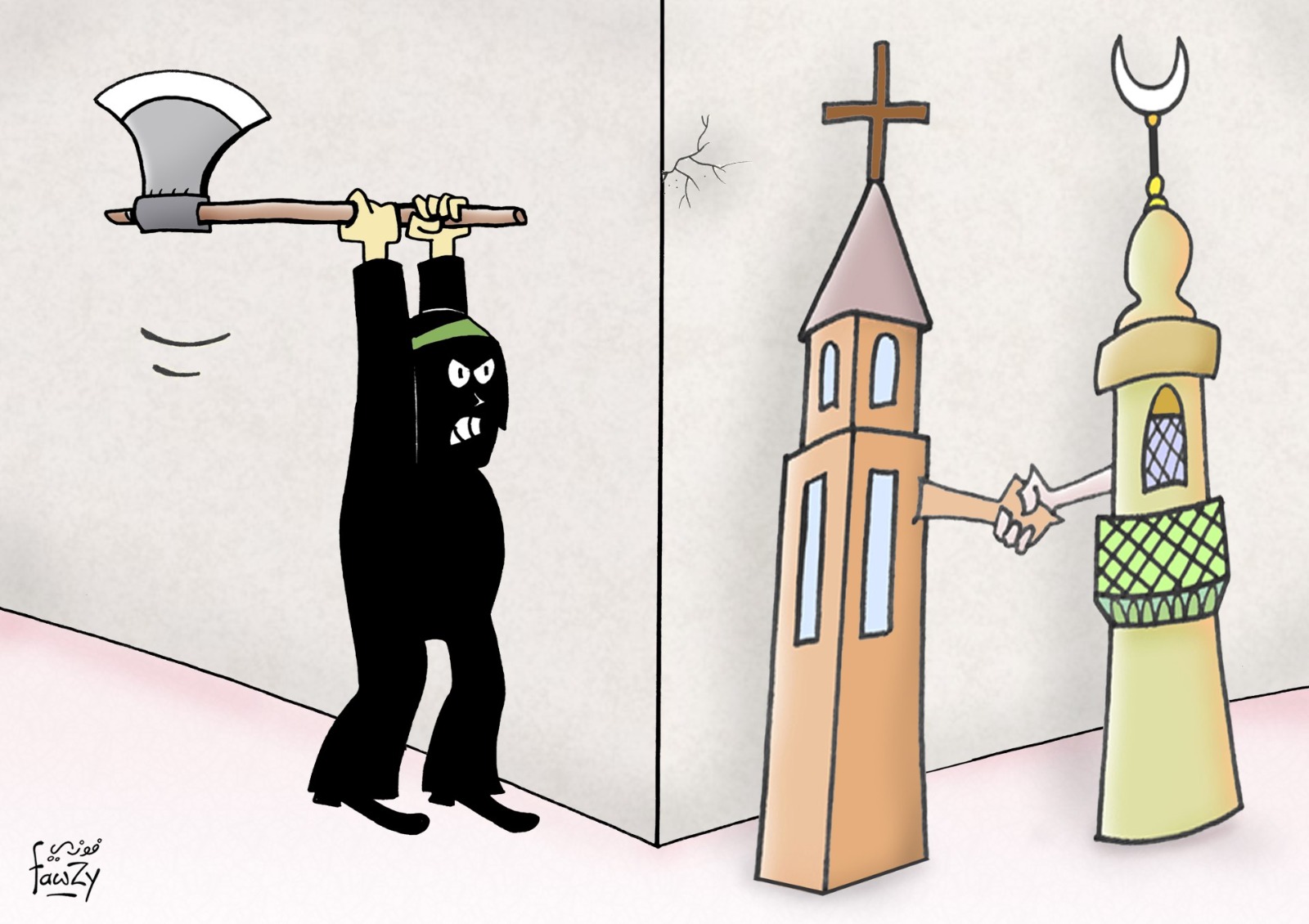 لفت جمعة إلى أن الكاريكاتيرات جاءت بأفكار جميلة تعضد الوحدة الوطنية وتظهر مدى التماسك في مواجهة أعداء الداخل والخارج من خلال استخدام رمزي الهلال والصليب وتوظيفهما في أشكال جمالية بديعة.