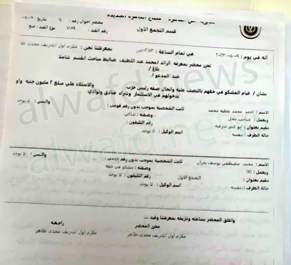 وأثبتت التحريات قيام المشكو في حقه م.م.ب بارتكاب الواقعة المُتمثلة في انتحاله صفة رئيس حزب سياسي واستيلائه على مبلغ 2 مليون جنيه بزعم الاستثمار وشراء فنادق ونوادي.