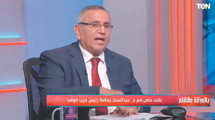 استضاف الإعلامى نشأت الديهى ببرنامجه «بالورقة والقلم» المذاع عبر فضائية قناة «TEN» الدكتور عبدالسند يمامة، رئيس حزب الوفد، للحديث عن انتخابات رئاسة الجمهورية المقبلة.