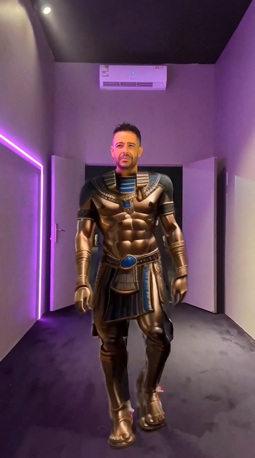 ظهر محمد حماقي داخل عالم الذكاء الاصطناعي بشكل فرعوني مميز، حيث روّج لمقاطع من حفله الأخير في جدة بين المشاهد الأصلية للحفل وبين ظهوره كملك فرعوني، وهو بذلك أول مطرب يستخدم الذكاء الاصطناعي كدعاية لحفلاته.