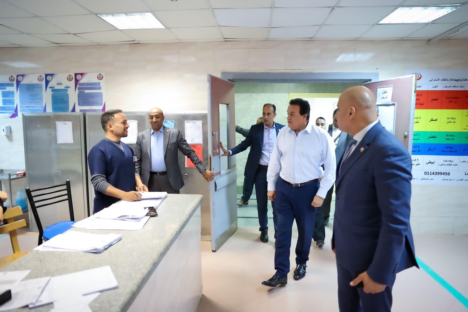 أوضح الدكتور حسام عبد الغفار، المتحدث الرسمي لوزارة الصحة والسكان، أن الوزير بدأ زيارته بتفقد قسم الاستقبال والطوارئ لمتابعة الخدمات المقدمة للمرضى المترددين على القسم وحالتهم الصحية، حيث تابع الوزير الخدمات المقدمة لمصابي الحوادث للوقوف على مستوى استعداد المستشفى لاستقبال تلك الحالات نظرًا لموقعه الجغرافي الهام بطريق «القاهرة - إسكندرية» الصحراوي.