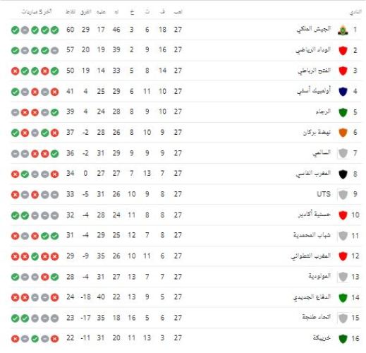 ترتيب الدوري المغربي