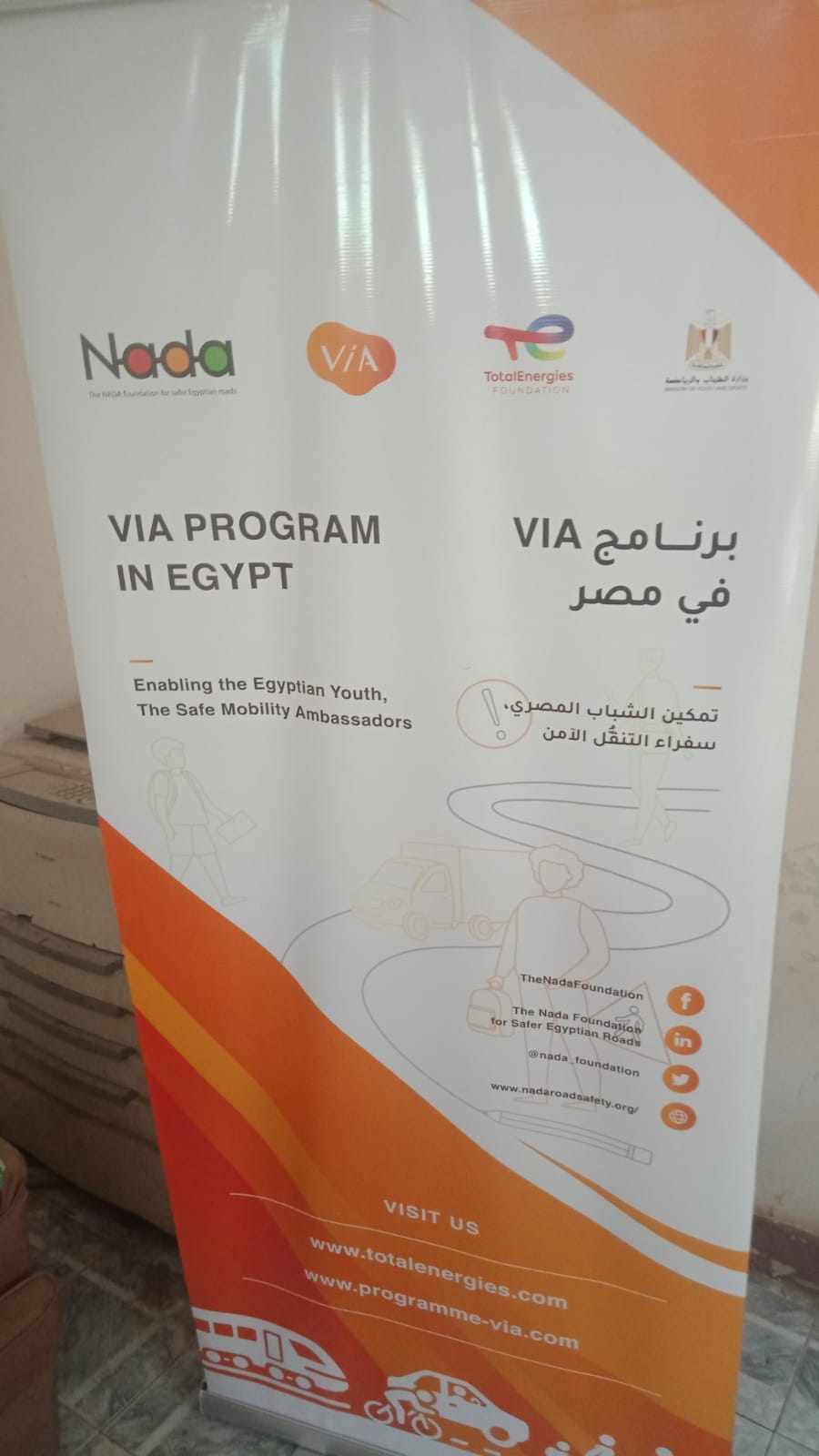 قامت وزارة الشباب والرياضة من خلال الإدارة المركزية لمراكز الشباب والهيئات -الإدارة العامة لأنشطة وفعاليات مراكز الشباب والهيئات، باستضافة برنامج ڤيا VIA للتنقُّل الآمن، بالتعاون مع مؤسسة ندى من أجل طرق مصرية آمنة وبدعم من توتال إنرجيز مصر، وذلك بمراكز الشباب بمحافظات القليوبية والدقهلية وبني سويف والفيوم.