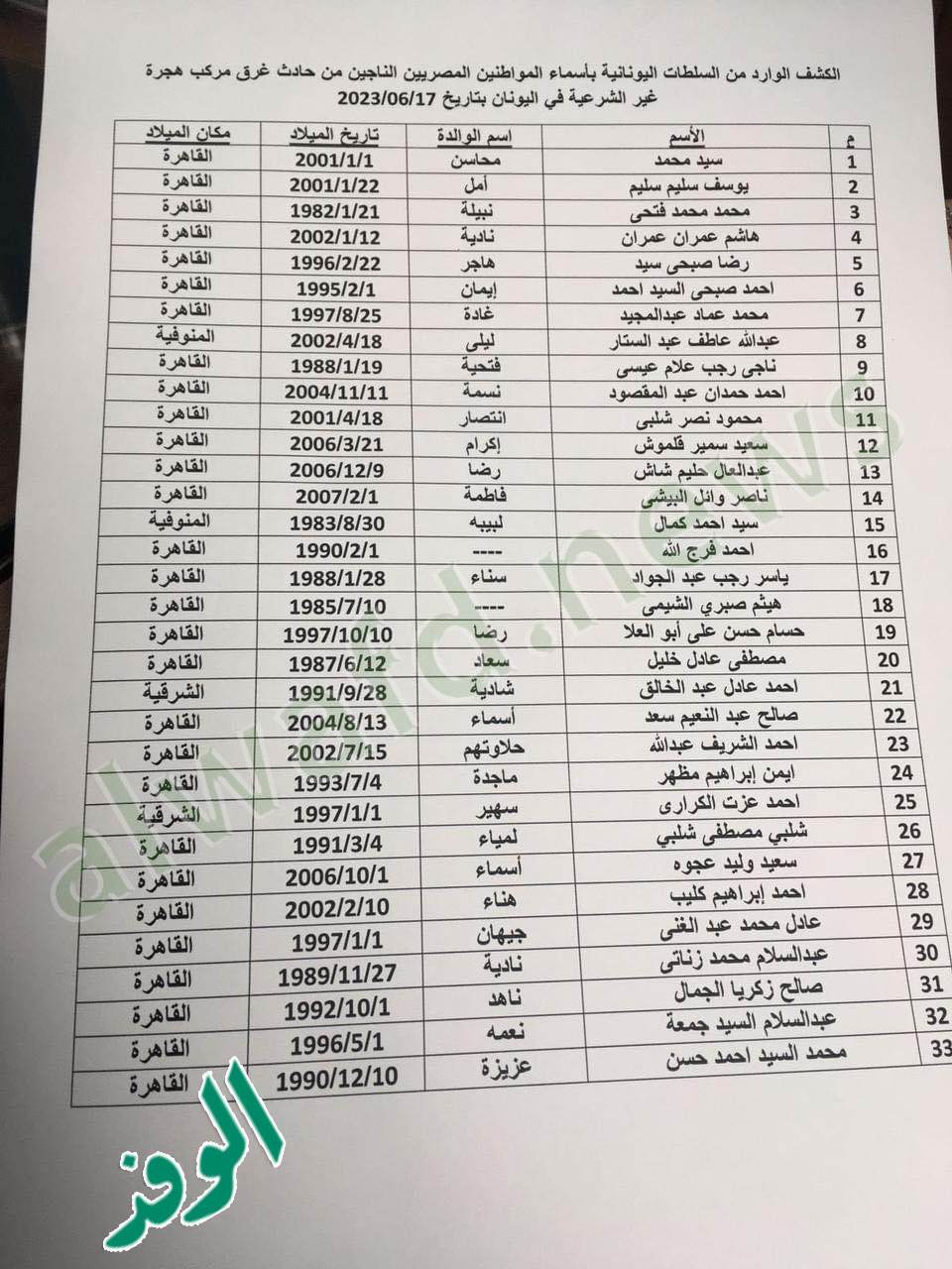 اقرأ ايضًا.. الوفد تكشف كواليس غرق مركب هجرة غير شرعية باليونان وأسماء الناجين .. صور
