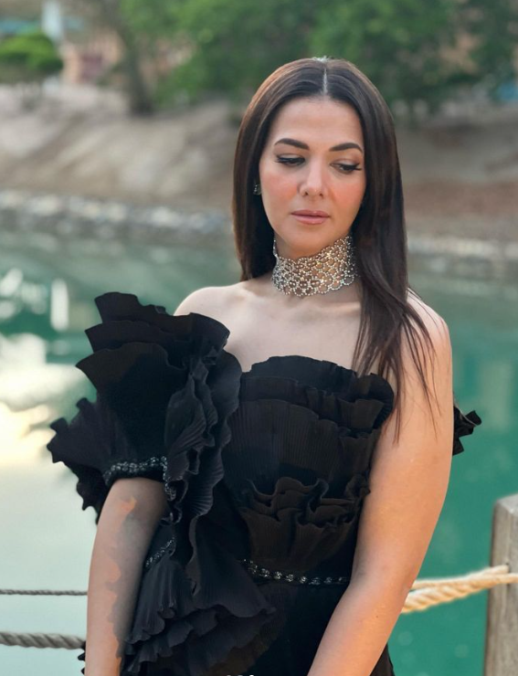 أما من الناحية الجمالية، اعتمدت دنيا سمير غانم تسريحة مميزة، إذ تركت خصلات شعرها اللامعة تتدلى بانسيابية على كتفيها، كما وضعت مكياجًا ناعمًا، يرتكز على رسمة العيون الهادئة مع الهايلايتر اللامع وأحمر الشفاه باللون الوردي، مما عكس جمال ورقة ملامحها الفاتنة كعادتها.