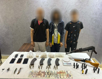 ضبط (3 أشخاص "لإثنين منهم معلومات جنائية") لقيامهم بمزاولة نشاطاً إجرامياً تخصص فى الإتجار بالمواد المخدرة ، متخذين من دائرة قسم شرطة السلام أول مسرحاً لممارسة نشاطهم الإجرامى، وبحوزتهم (كمية من مخدر "الهيروين" وزنت كيلو جرام – بندقية آلية – بندقية خرطوش – عدد 4 خزينة – عدد من الطلقات مختلفة الأعيرة – عدد 2 سلاح أبيض – عدد 5 هواتف محمولة - مبلغ مالى - ميزان حساس – عدد 2 دراجة نارية "بدون لوحات معدنية") .