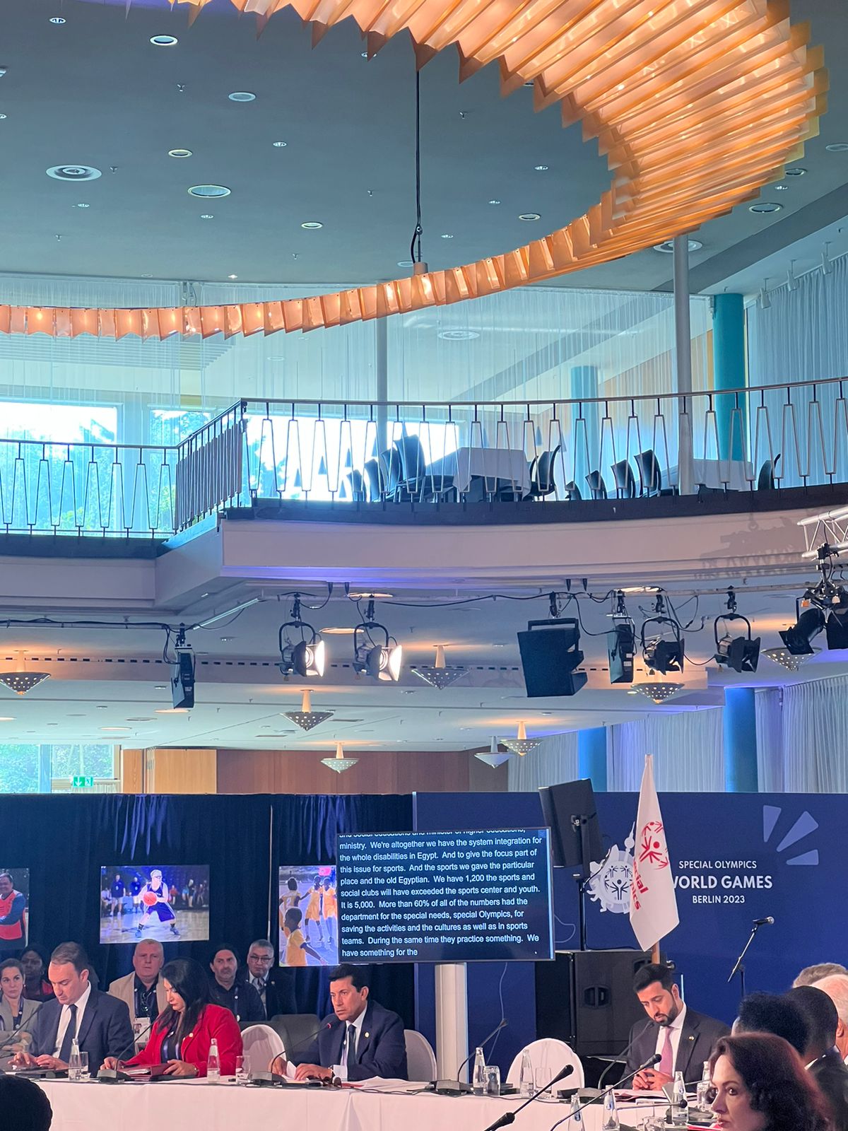 وكان وزير الشباب والرياضة قد التقي بمسئولي بعثة الأولمبياد الخاص فور وصوله المانيا بالأمس، بمقر السفارة المصرية بحضور السفير خالد جلال عبد الحميد، سفير مصر لدى ألمانيا، الدكتورة نيفين القباج وزيرة التضامن الاجتماعي، والمهندس أيمن عبد الوهاب الرئيس الإقليمي للأولمبياد الخاص، والمهندس هاني محمود رئيس الأولمبياد الخاص المصري، والفنان حسين فهمي سفير الاولمبياد الخاص، الدكتور باسم تهامي رئيس البعثة المصرية.