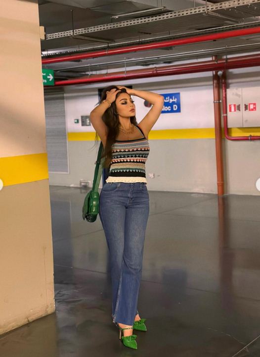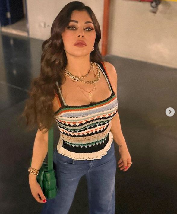 وبدت هيفاء وهبي بإطلالة كاجوال عصرية، ضمت بنطال جينز ذا ساقين فضفاضتين، ونسقت عليهم توب مُجسم مكشوف الأكتف، تميز بالنقشات الملونة بالأوف وايد والأسود والأخضر.