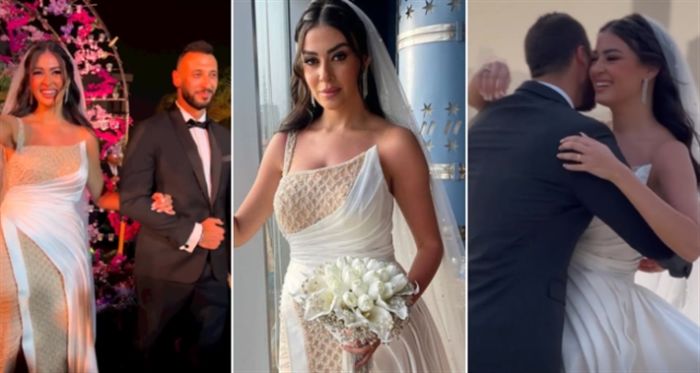 وظهرت ميرنا في حفل زفافها بإطلالة ملائكية، وفستان بسيط غير منفوش، وشعر منسدل على الكتفين، مع مكياج هادئ وبسيط.