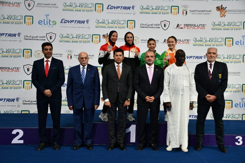 وقام الدكتور أشرف صبحي ودير الشباب والرياضة بتسليم الميداليات بحضور السيد مابينك أديا رئيس الاتحاد الأفريقي للسلاح،الدكتور كمال درويش رئيس اللجنة العلمية بالوزارة، المهندس عبد المنعم الحسيني رئيس الاتحاد المصري للسلاح، وعدد من رؤساء اتحادات السلاح بدول غانا وتوجو ورواندا وبتسوانا، ولفيف من قيادات وزارة الشباب والرياضة.