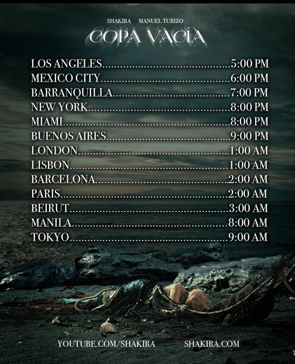 وظهرت شاكيرا خلال الصور وهي ترتدي زي عروس البحر،كما ارفقت بالصور جدول مواعيد الإصدار في مناطق مختلفة، وقد حددت موعد الإطلاق يوم 29 يونيو 2023.