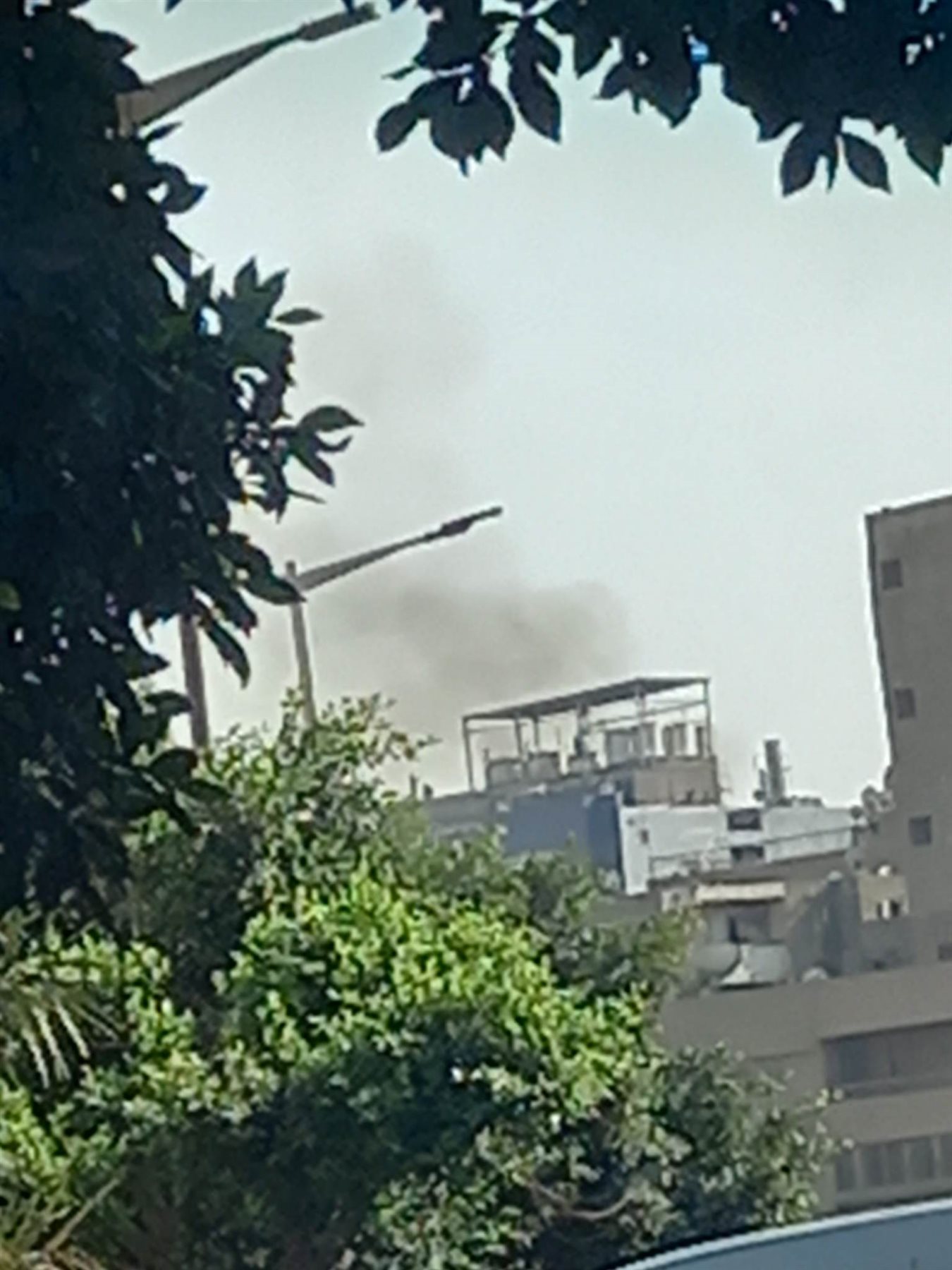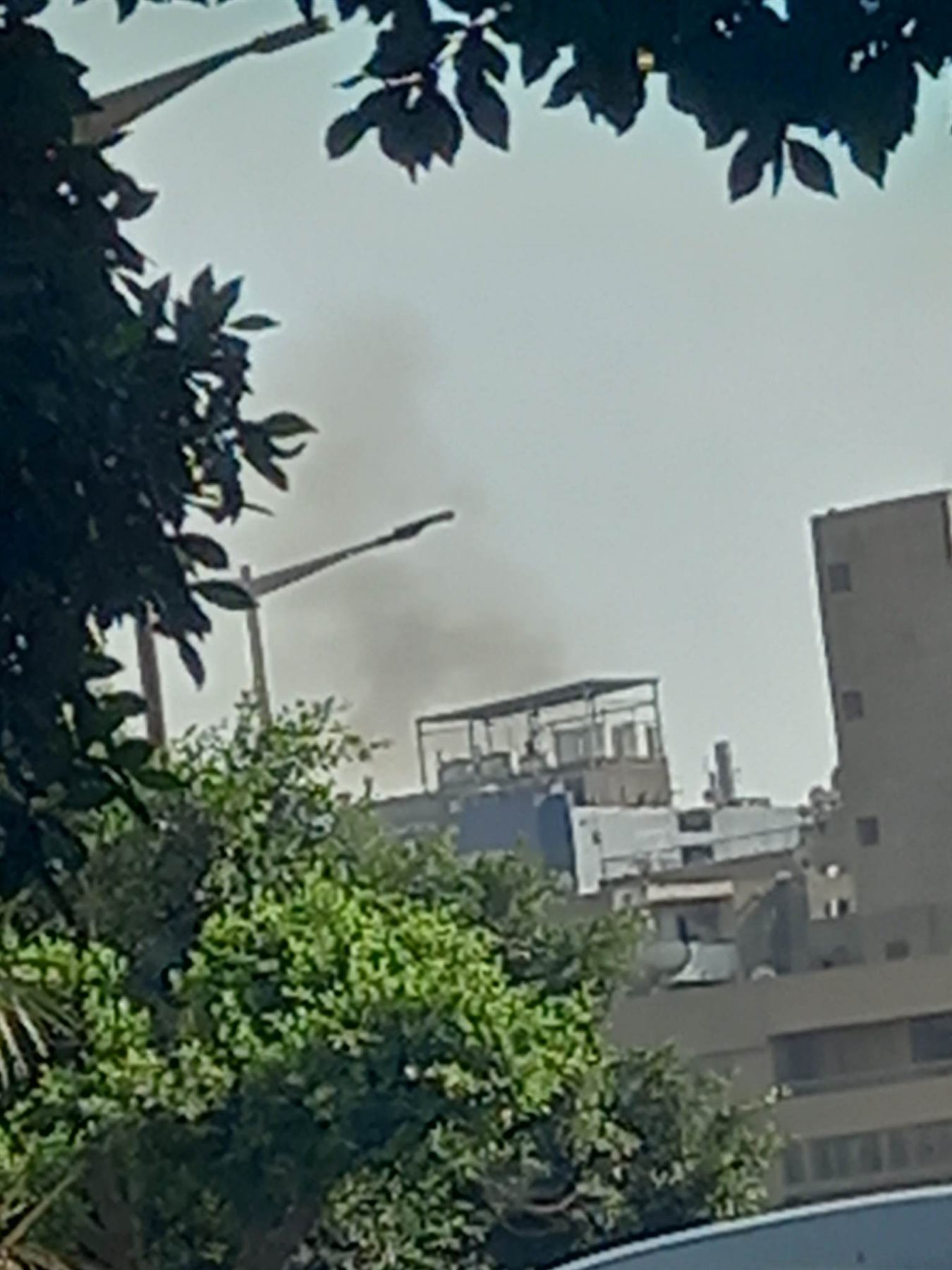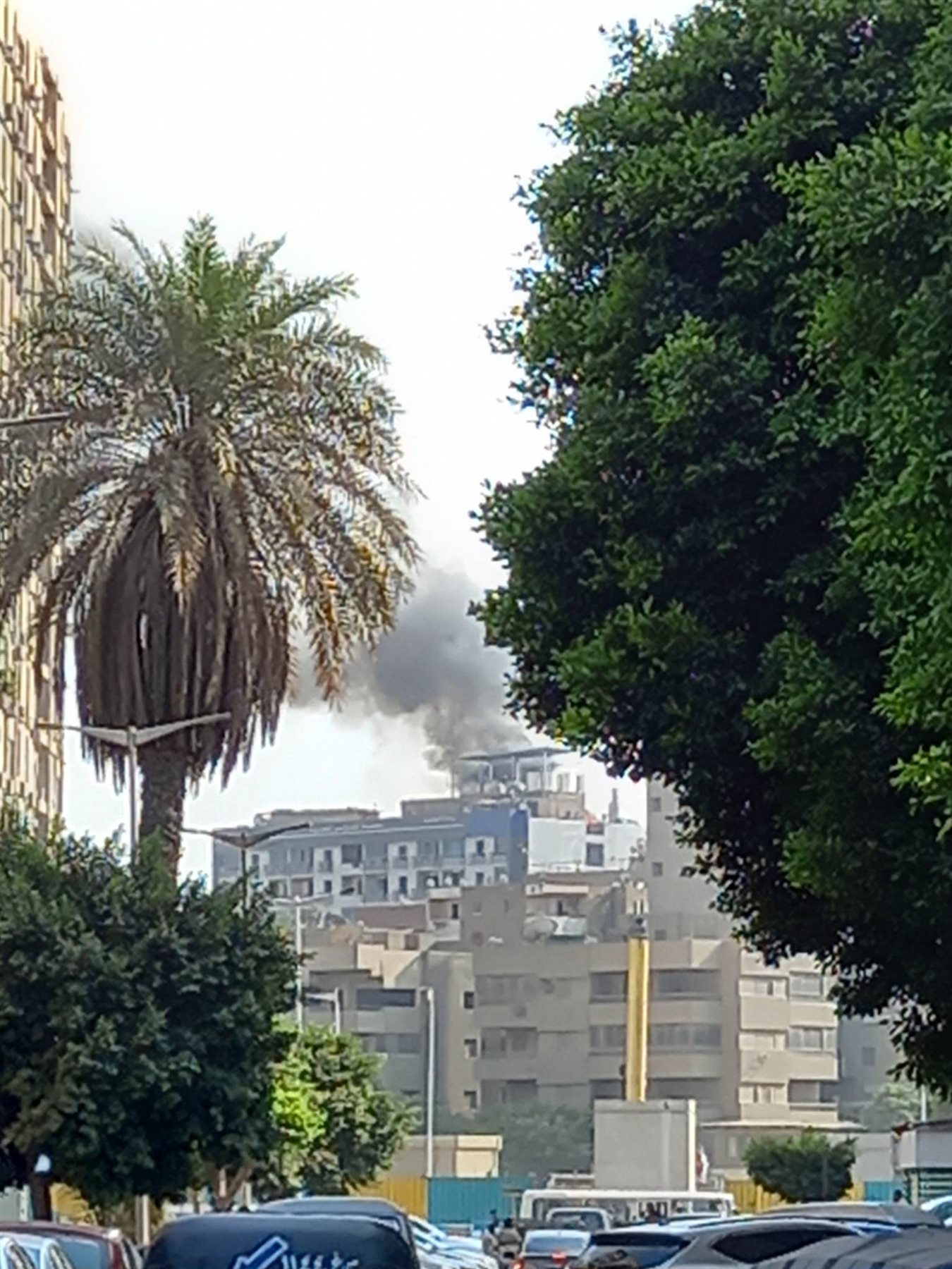 اشتعال النيران في خزانات مياه أعلى عقار بالمهندسين .. صور