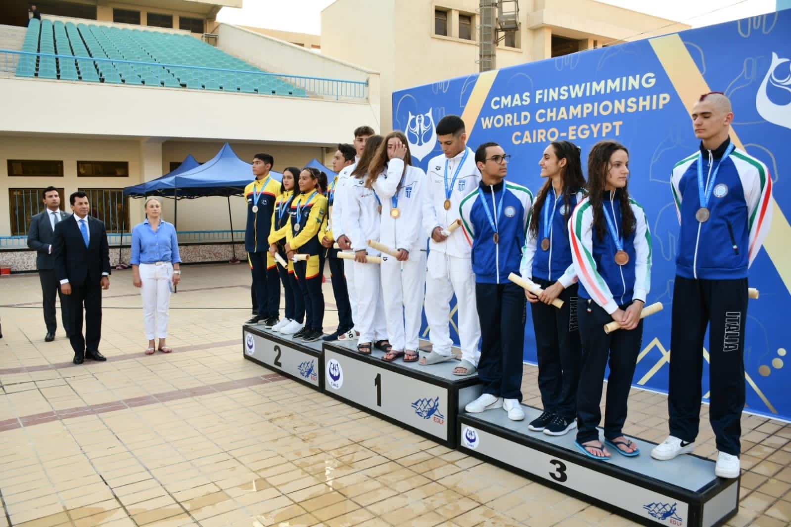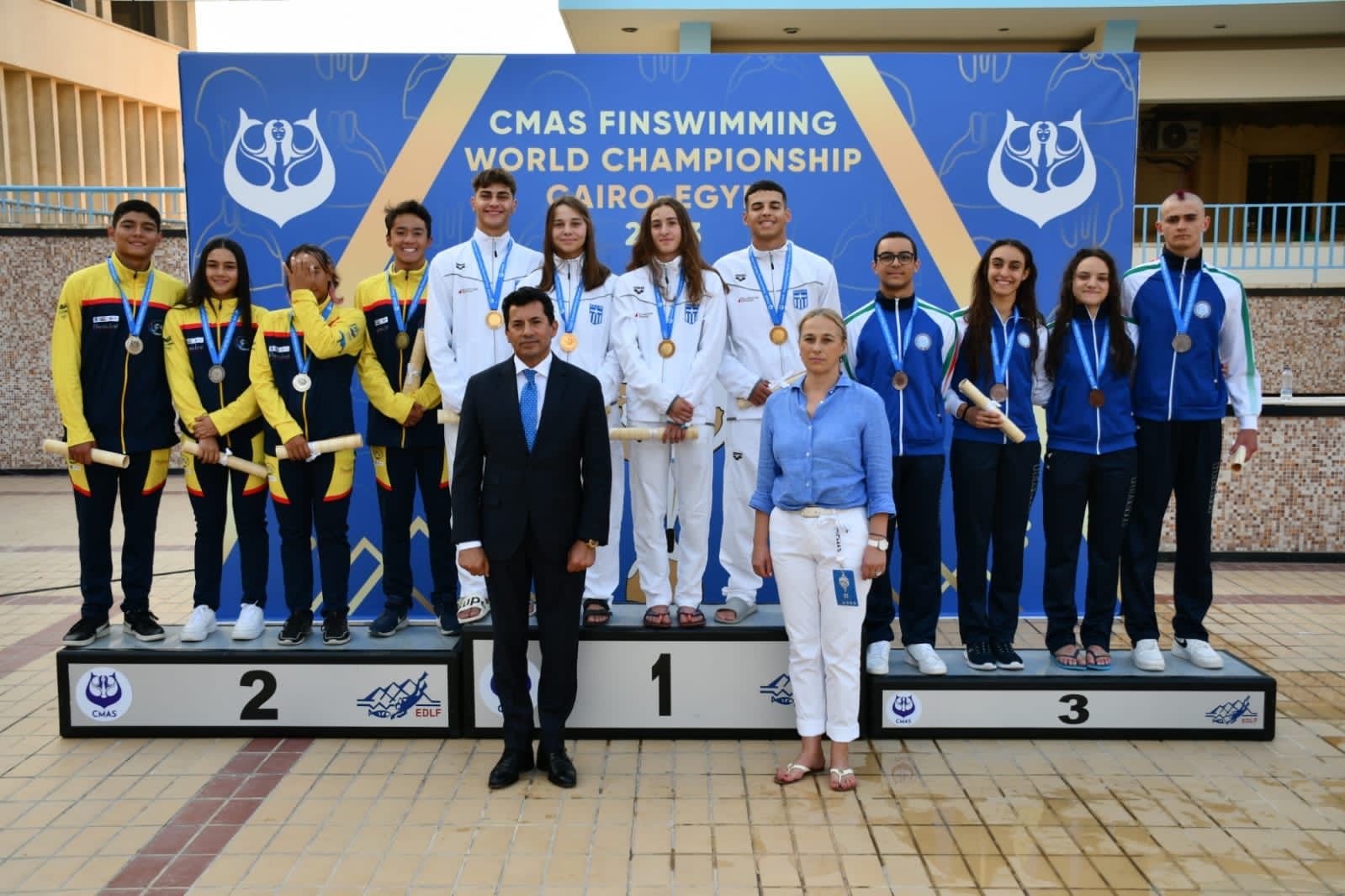وزير الشباب يُكرم الفائزين في ختام منافسات اليوم الأول ببطولة العالم للناشئين للسباحة