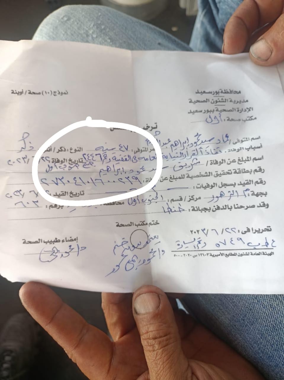 وتلقي قسم أول جنوب بورسعيد، إشارة من المستشفي العام، مفادها استقبال جثة المواطن "عماد سيد محمود"، 47 سنة، سائق ومقيم بطنطا، متوفي أثر إصابته بطعنات نافذة بالقلب، ووجود شبهة جنائية حول الوفاة.
