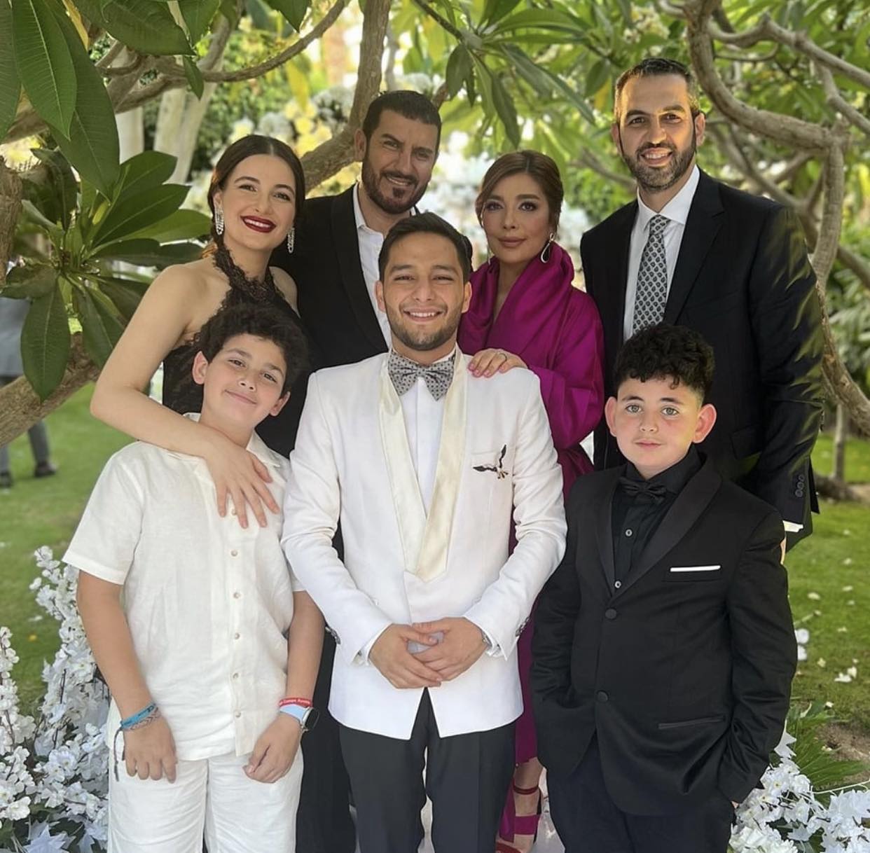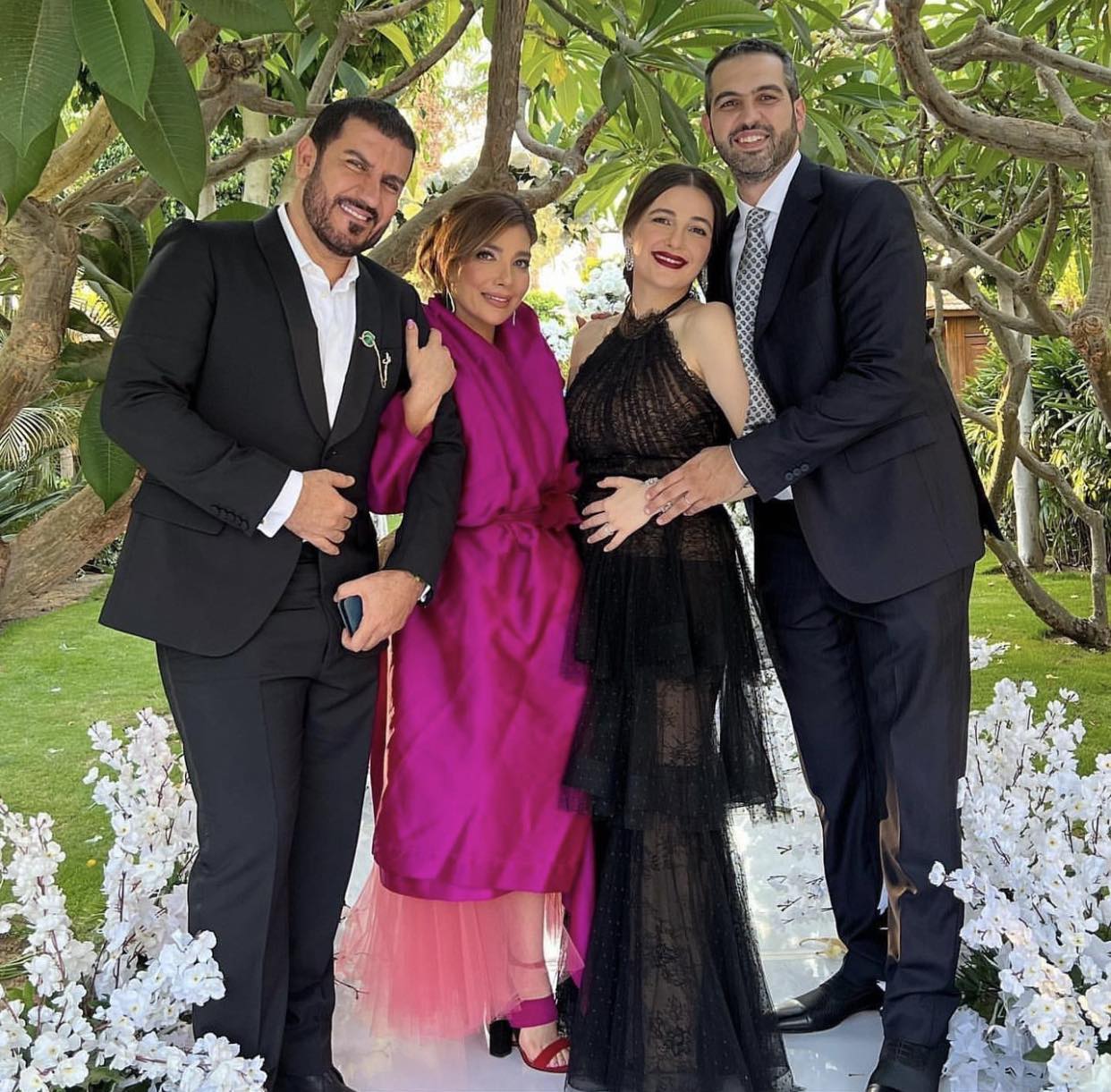 أصالة نصري تتألق بفستان وردي ومكياج ترابي في زفاف شقيقها أنس (صور)