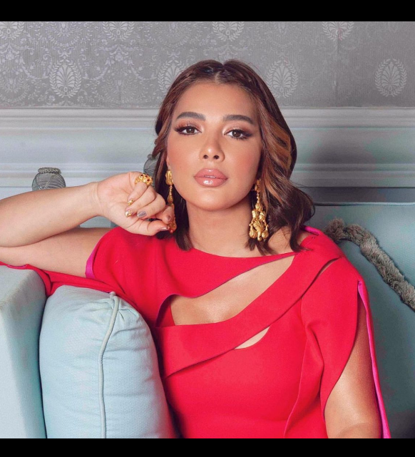 وبدت أصالة بفستان باللون الفوشيا الفضفاض، مستوحى تصميمه على شكل الوردة، ومحدد الخصر بحزام نفس اللون، ومُزين نهاية الفستان قماش من التُل الناعم.