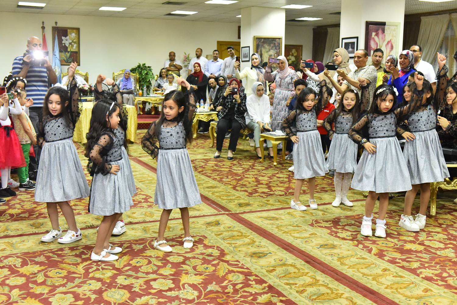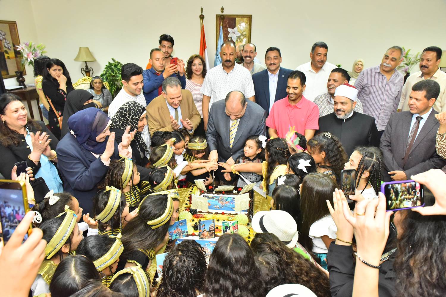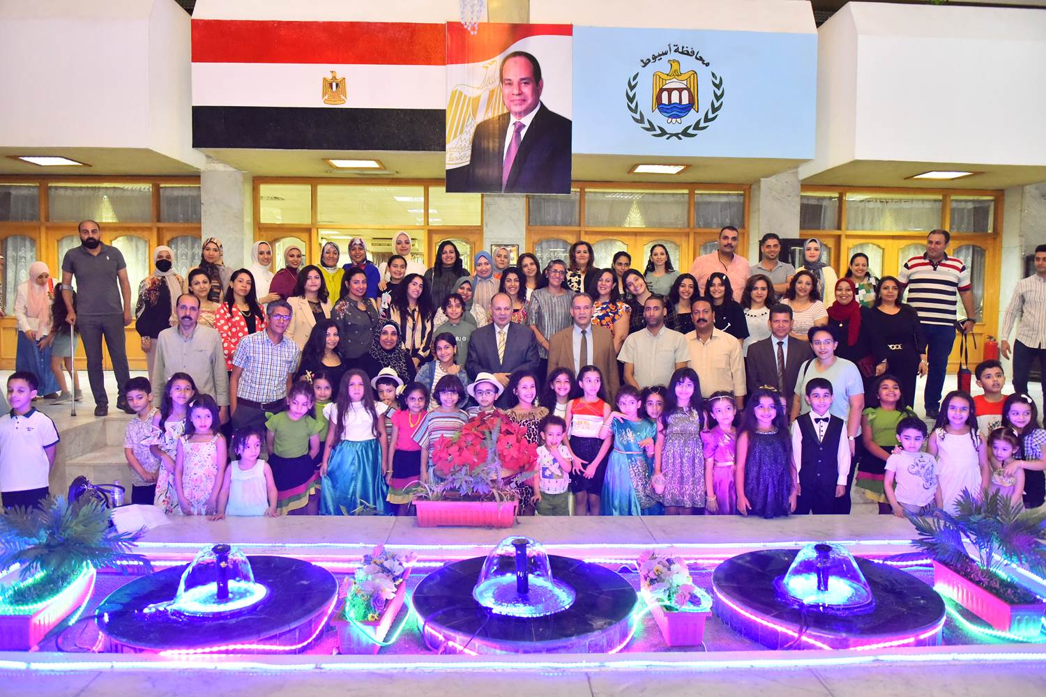 وفي بداية الاحتفالية شهد المحافظ بعض العروض الفنية لأطفال روضات مدارس "الوحدة العربية - الأقصى بمجمع 30 يونيو - الفاروق الرسمية لغات - السلام لغات - مدرسة النيل المصرية الدولية بأسيوط" تم خلالها تقديم العديد من العروض الفنية وبعض الأغاني الوطنية رافعين أعلام مصر كما تم تقديم عروض استعراضية وفنية تعبر عن مختلف الثقافات والحضارات حول العالم في شكل فني بديع كما شهدت الاحتفالية تقديم التورتة والحلويات لأطفال روضات المدارس بمشاركة أولياء الامور والمعلمين.