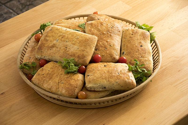 أدخلي الصينية إلى الفرن لحوالي 20-25 دقيقة حتى تنضج فطائر الزيتون الأخضر وقدميها ساخنة.