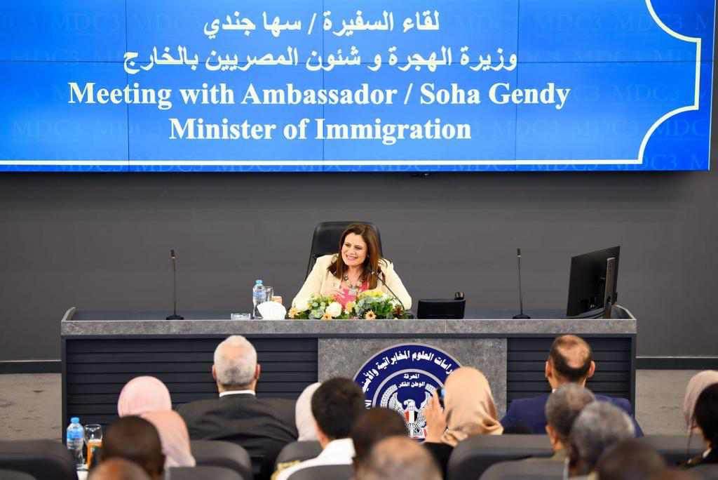 كما إستعرضت وزيرة الهجرة إستراتيجية الدولة المصرية فى ملف الهجرة والمهاجرين موضحة أن المصريين بالخارج ساهموا فى تنمية العديد من الدول خاصة الأشقاء العرب الذين كان لديهم رغبة فى إستقدام الخبرات المصرية والإعتماد عليها فى عمليات التنمية ، نتيجة التقارب والعلاقات الوثيقة بين مصر وأشقائها العرب وكذلك مشاركتهم فى الإستثمار بشكل مباشر فى العديد من المشروعات والعمل على الإستفادة من كل علمائنا وخبرائنا بالخارج وربطهم بقضايا التنمية المستدامة فى مصر وتقديم كافة التيسرات لأبناء المصريين بالخارج فى مجالات التعليم والثقافة وغيرها من المجالات، مؤكدة الحرص على إعمال التواصل المستمر مع كافة الفئات من الجاليات المصرية بالخارج والإستفادة منهم فى مختلف المجالات وذلك من خلال الإستناد إلى إستراتيجية إتصال مستدام لبحث مشكلاتهم وتذليل العقبات التى تواجههم والعمل على دعم إستقرارهم بالخارج.
