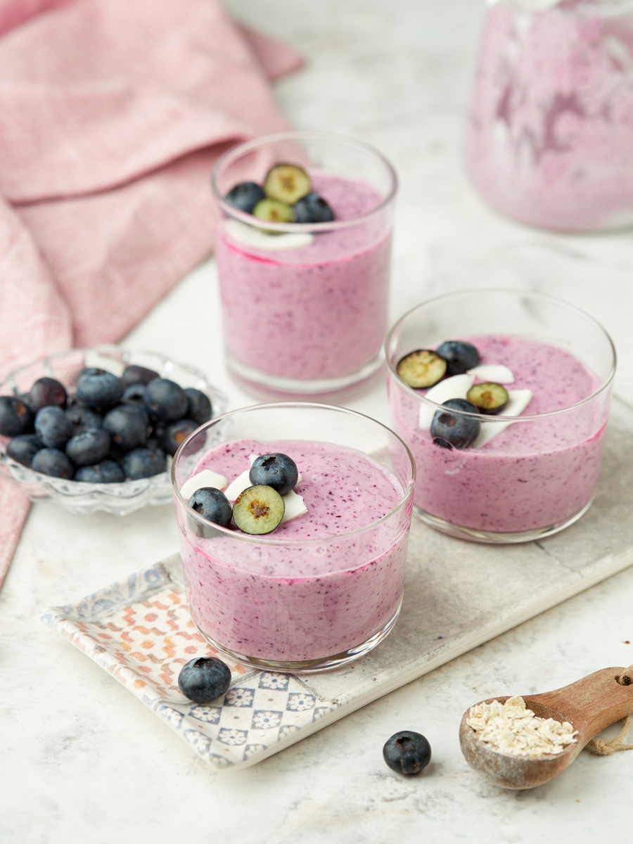 صبي سموذي التوت في أكواب للتقديم، وقدميه فوراً.