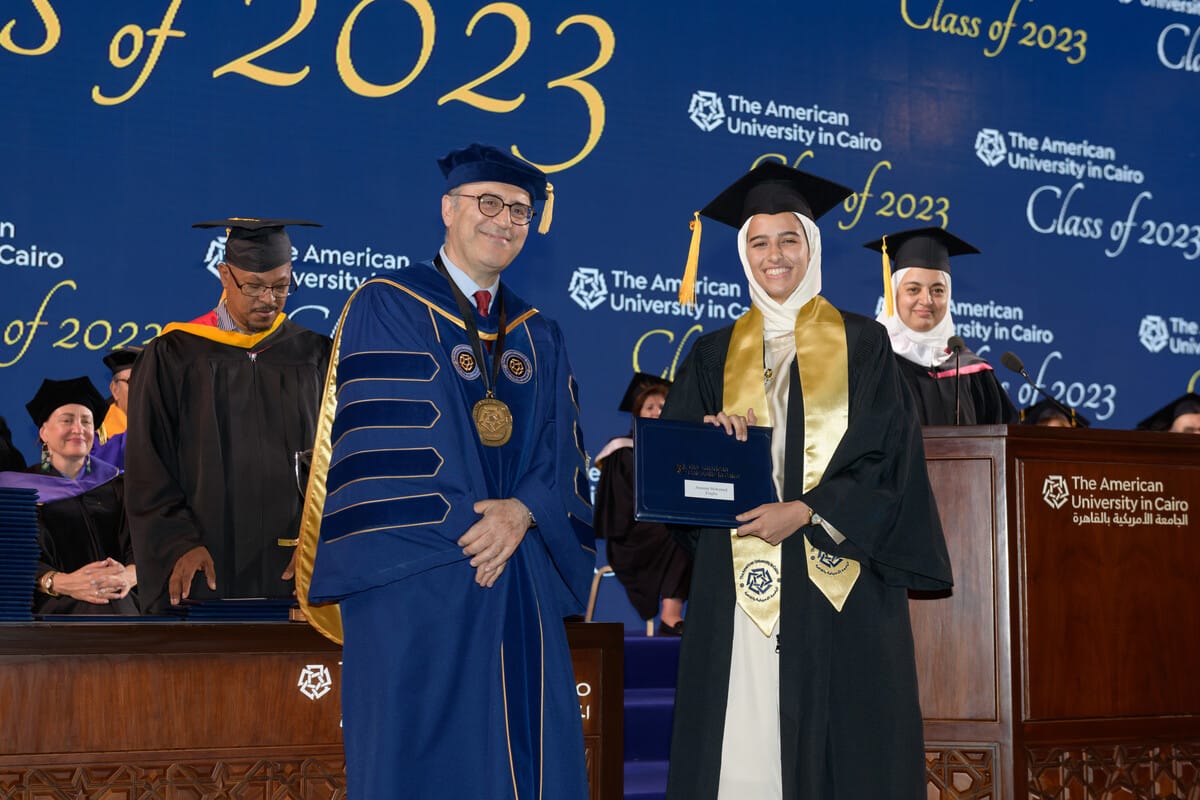 أقامت الجامعة الأمريكية بالقاهرة حفل تخرج دفعات جديدة للبكالوريوس والدراسات العليا حيث تم منح شهادة البكالوريوس لـ 653 طالبًا.
