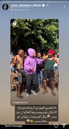 وفي الوقت نفسه، اعترضت راندا عبد السلام على مقطع فيديو آخر للبلوجر نويل روبنسون، بسبب ظهوره وهو يرقص مع سكان منطقة شعبية، منتقدة الأشخاص الذين يختارون له هذه الأماكن لزيارتها لتكون واجهة مصر في الخارج، حيث قالت: "أنا نفسي أفهم مين ال واخده ومنزله الأماكن دي وبيصدروها للعالم إن دي مصر وكل الفيديوهات ملهاش علاقة بمصر".