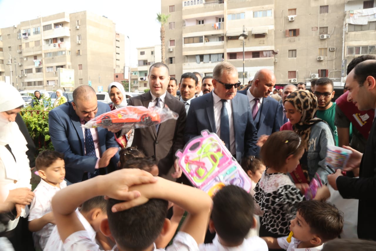 نورالدين والبشبيشي يشاركان في توزيع الحلوى والورود على دور الأيتام