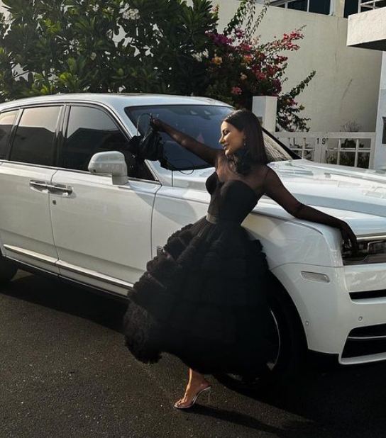 وظهرت مهيرة عبدالعزيز بإطلالة أنيقة عكست قوامها الممشوق ووزنها المثالي في آن واحد، حيث ارتدت فستان طويل ينتمي لقصة الكورسية صمم من قماش ناعم بالتل الأسود.