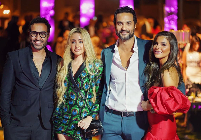 أحمد فهمي وهنا الزاهد مع كريم فهمي وزوجته دانيه