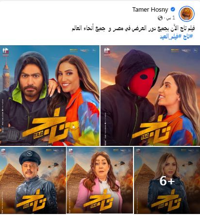 كتب "حسني"، عبر صفحته قائلًا: "فيلم تاج الآن بجميع دور العرض في مصر وجميع أنحاء العالم".