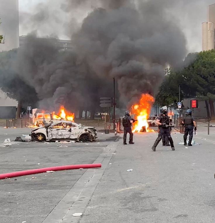 واستمرت أعمال الشغب في مدينة نانتير مساء اليوم على خلفية مقتل المُراهق الذي يُدعى "نائل" على يد الشرطة الفرنسية أثناء توقيف مروري، مُشيرة إلى أن المتظاهرين وعدوا بأيام غضب.