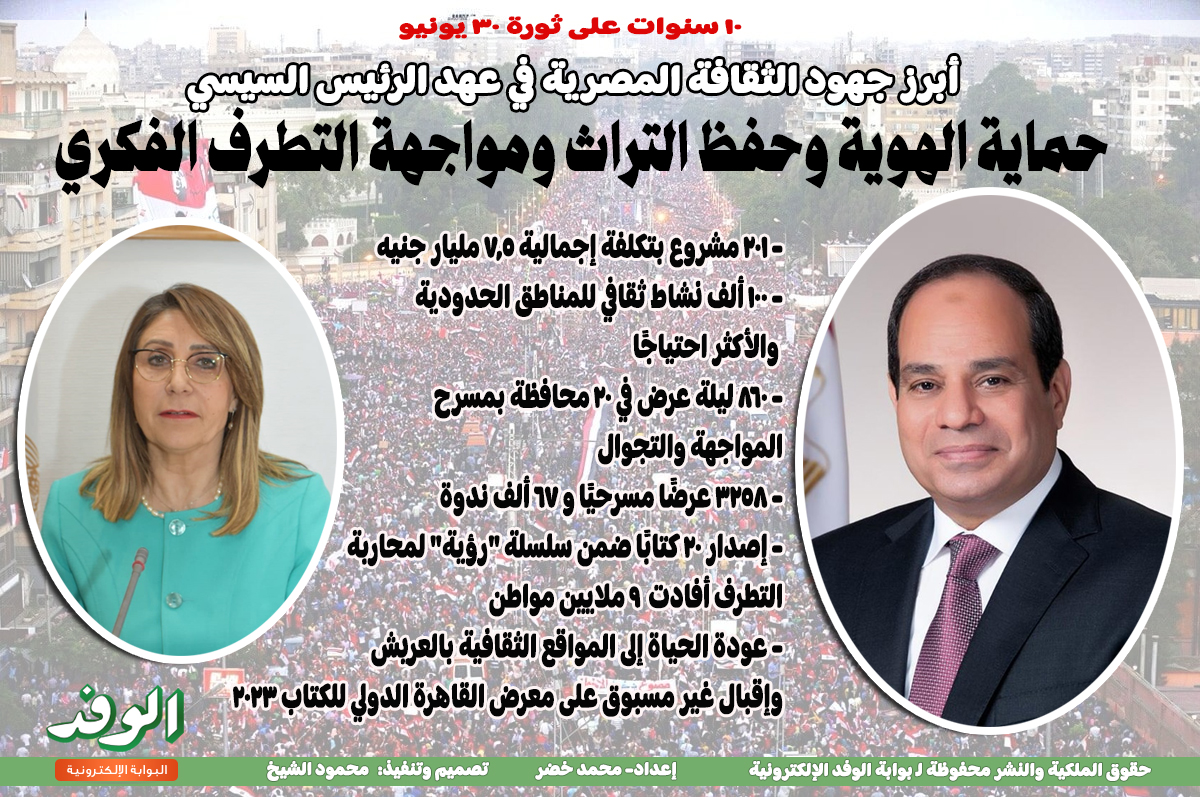 جهود الثقافة لحماية الهوية وحفظ التراث ومواجهة التطرف في عهد الرئيس السيسي (إنفوجراف)