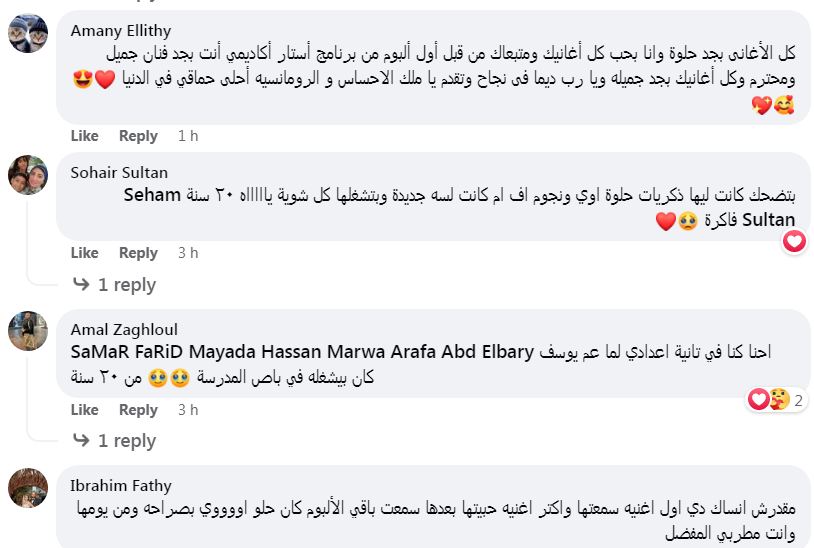 سجل متابعو حماقي ذكرياتهم وطريقة تعرفهم على صوت حماقي والظروف التي جمعتهم بـ "خلينا نعيش" عبر تعليقاتهم على المنشور الخاص على صفحة حماقي الرسمية كالآتي: