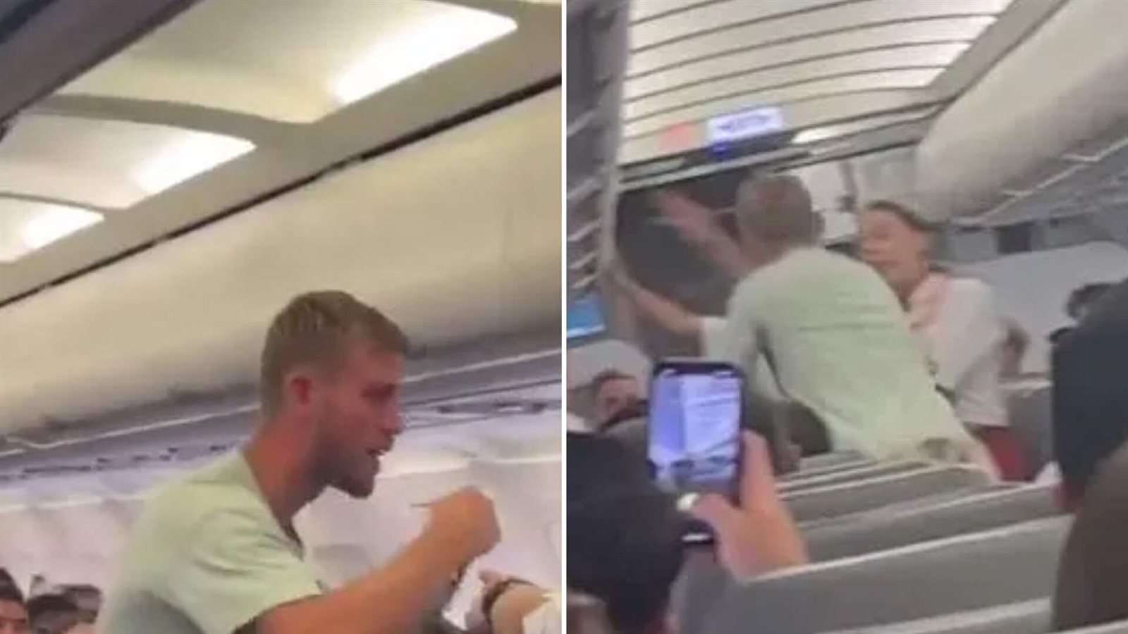 ملاكم "مخبول" حاول فتح باب طائرة .. فيديو