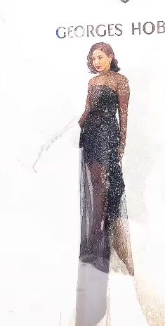 مهيرة عبدالعزيز تتألق بالشفاف في عرض أزياء جورج حقيبة