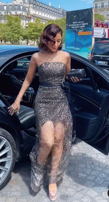 وتألقت مهيرة عبدالعزيز بإطلالة ساحرة، حيث ارتدت فستان مجسم، قصير وطويل بالتل الطويل، بأكمام طويلة مزود بجوانتي لتواكب احدث صيحات موضة فساتين صيف 2023، فيما انتعلت حذاء بكعب عال.
