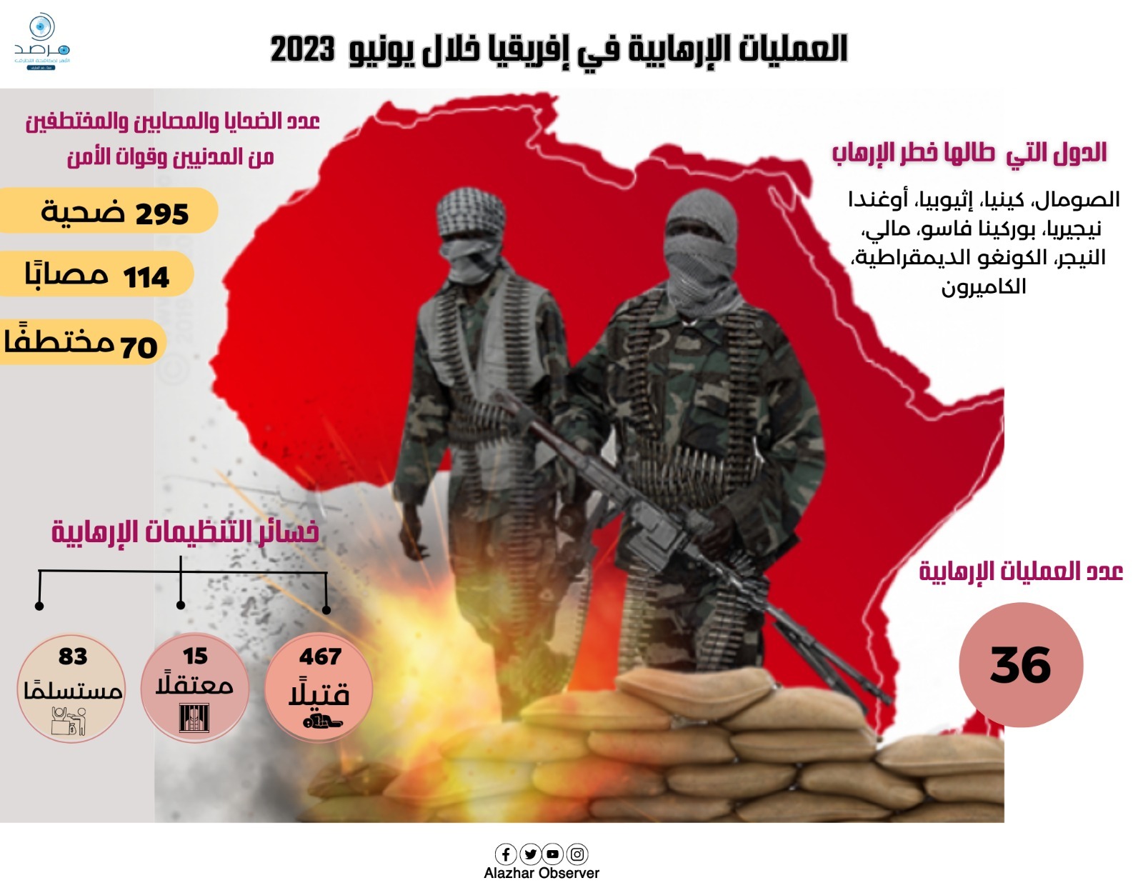 مرصد الأزهر ينشر إحصائية أنشطة التنظيمات الإرهابية في الدول الإفريقية ليونيو 2023