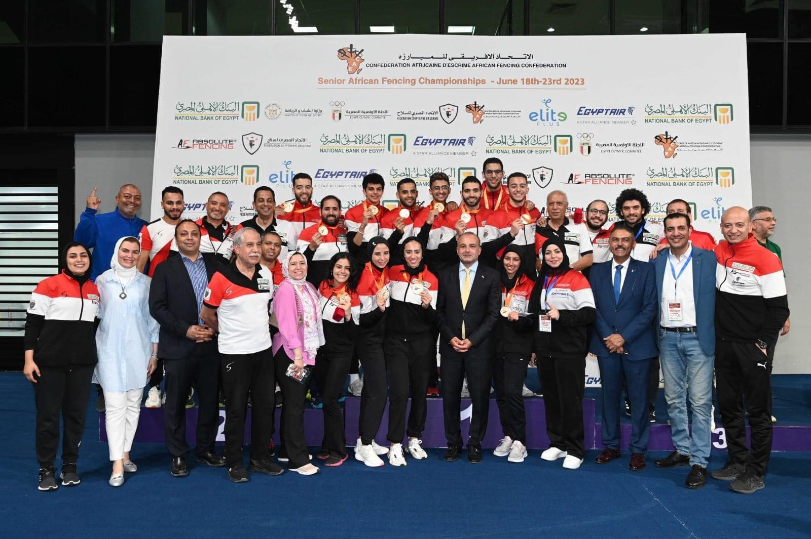 سلاح سيف المبارزة رجال: "أحمد السيد ومحمد السيد ومحمد ياسين ومحمود السيد"، بينما ضمتْ قائمة السيدات: "ناردين إيهاب وآية شريف ولولوة سليمان وساره بيومي".