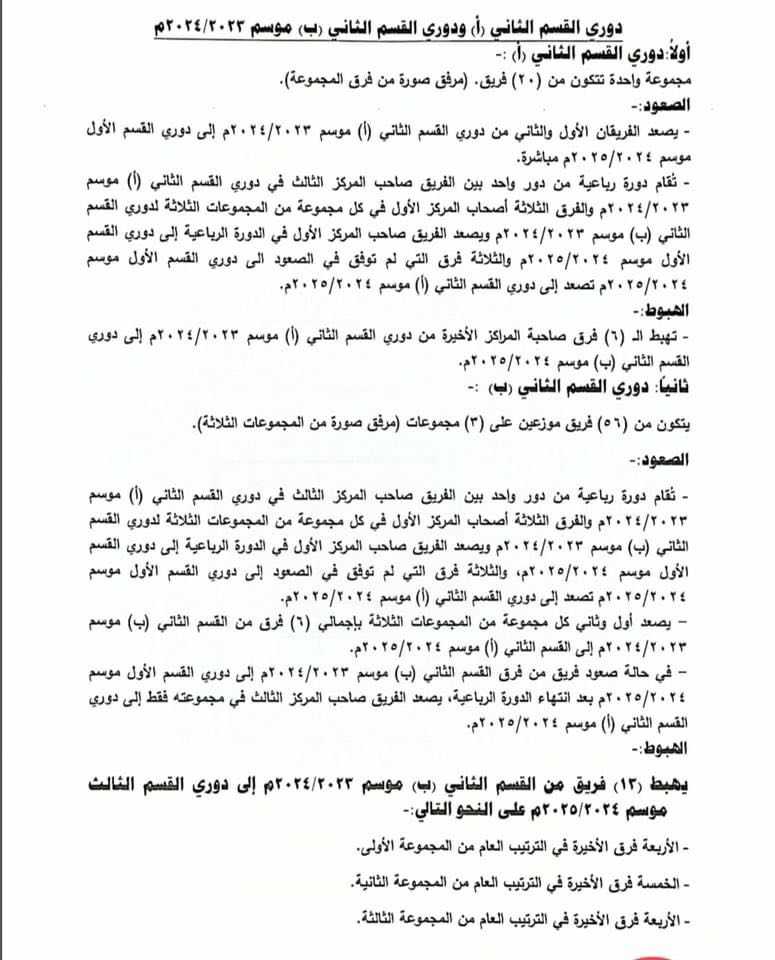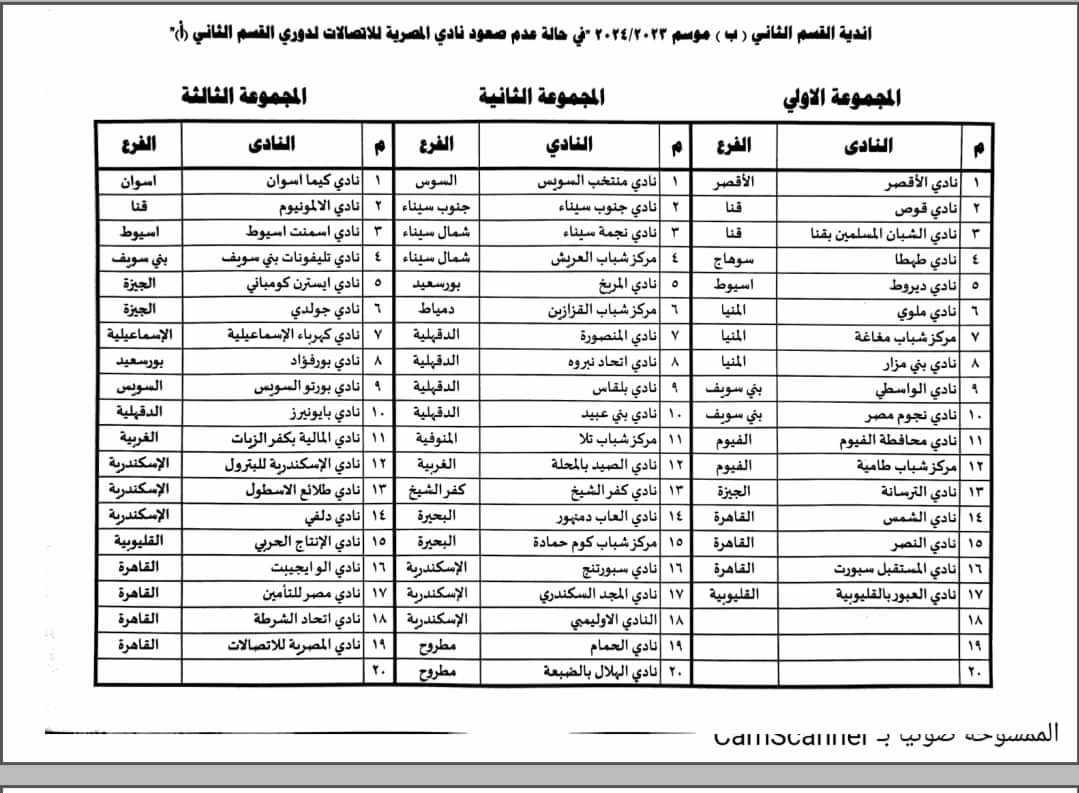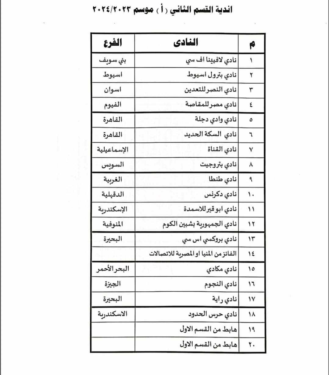 بينما ستكون هناك ثلاث مجموعات بدوري القسم الثاني “ب” خلال الموسم المقبل 2023/2024، وستكون الأندية المشاركة كالتالي: