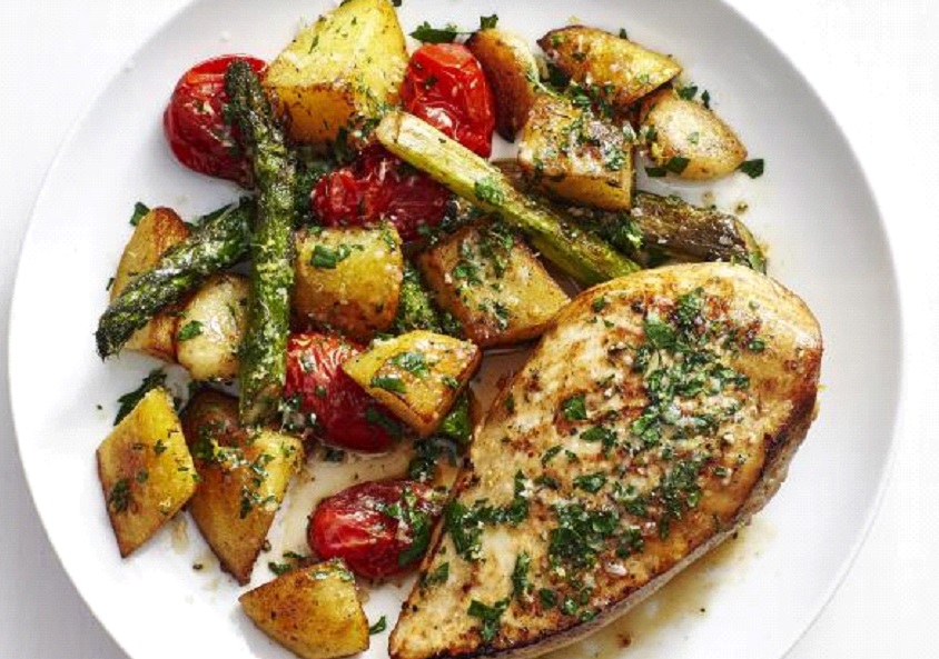 اصنعي دجاج بالفرن مع خضار للريجيم