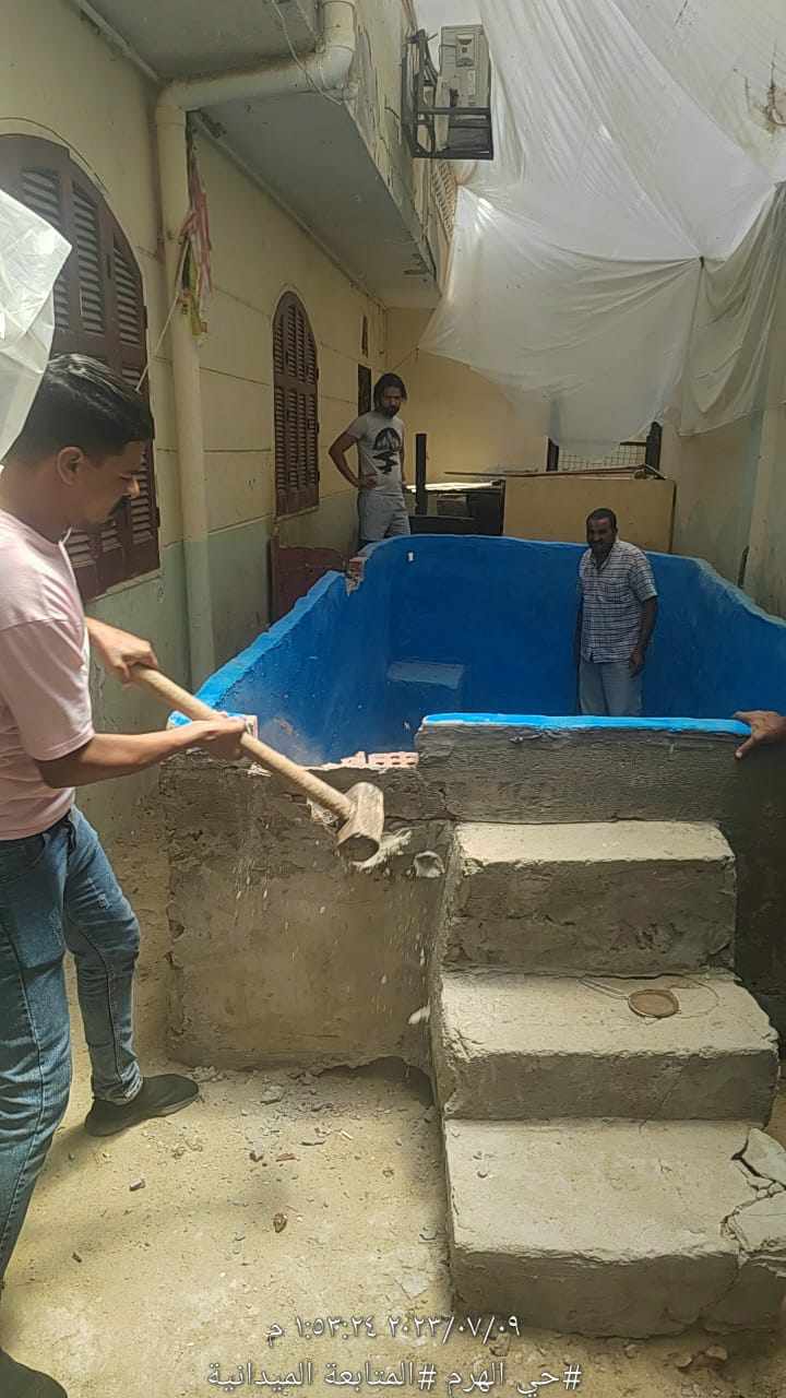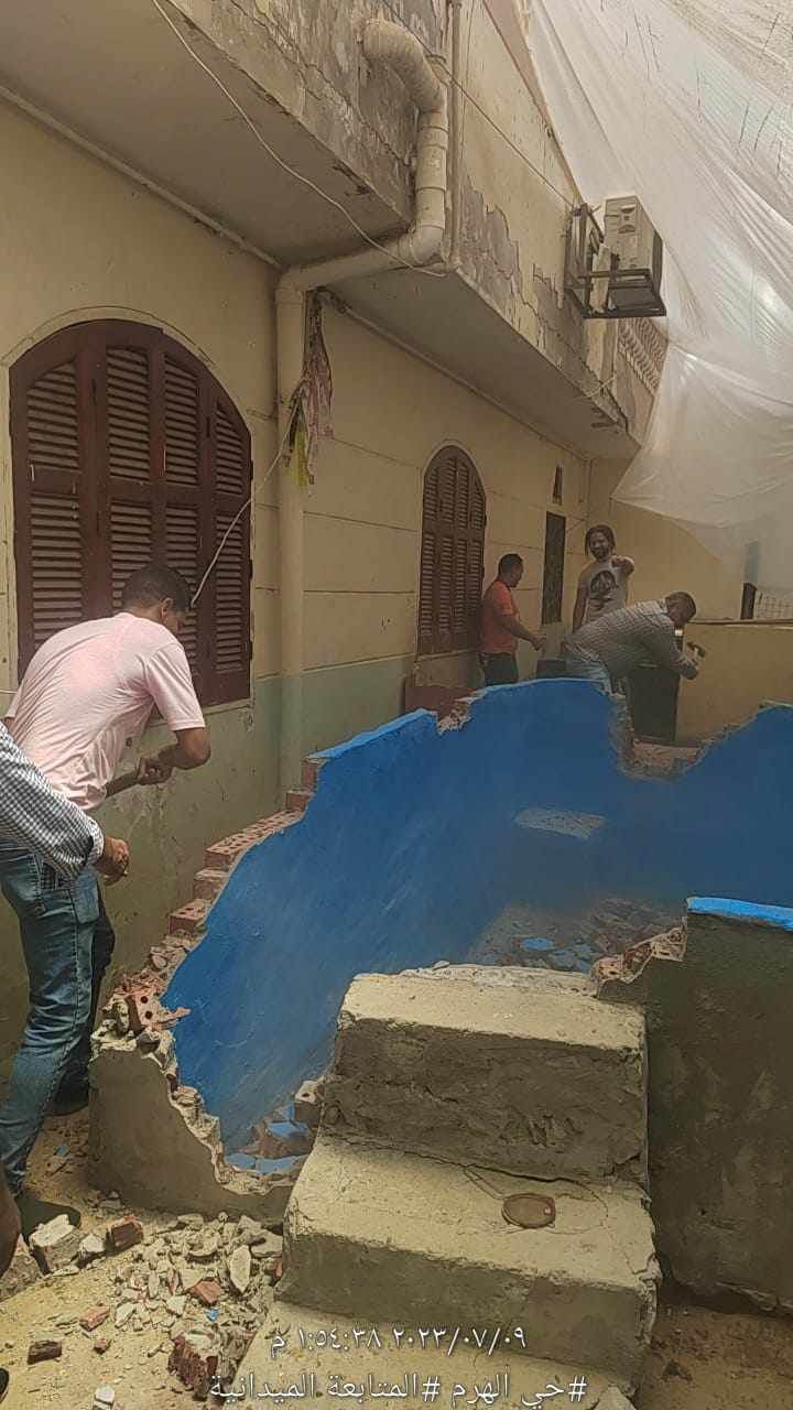 إزالة حمام سباحة مقام بالمخالفة داخل عقار بحدائق الأهرام