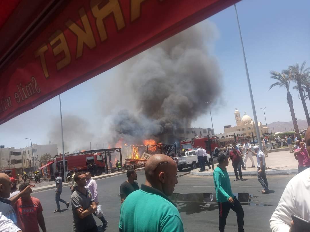 وقد انتقل لموقع الحريق اللواء شريف رؤوف مدير امن جنوب سيناء واللواء رماح هاشم ورئيس مدينة شرم الشيخ .