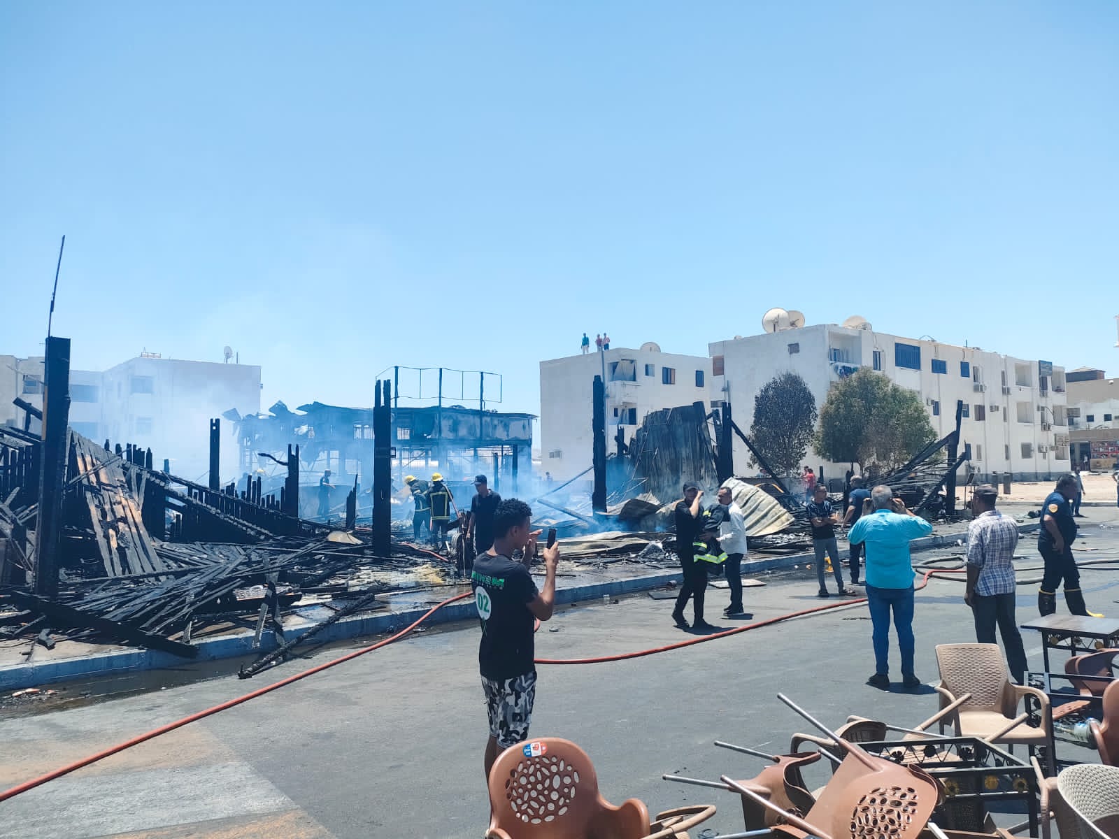 الدفاع المدني يسيطر علي حريق هائل بأحد الكافيهات بحي النور في شرم الشيخ