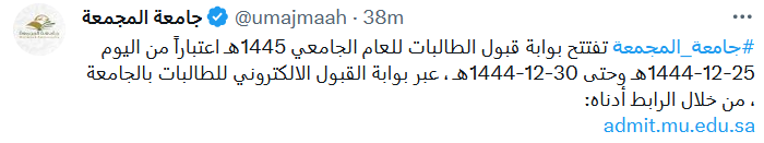 جامعة المجمعة تبدأ في استقبال طلبات القبول للعام الجامعي 1445.. للطالبات فقط