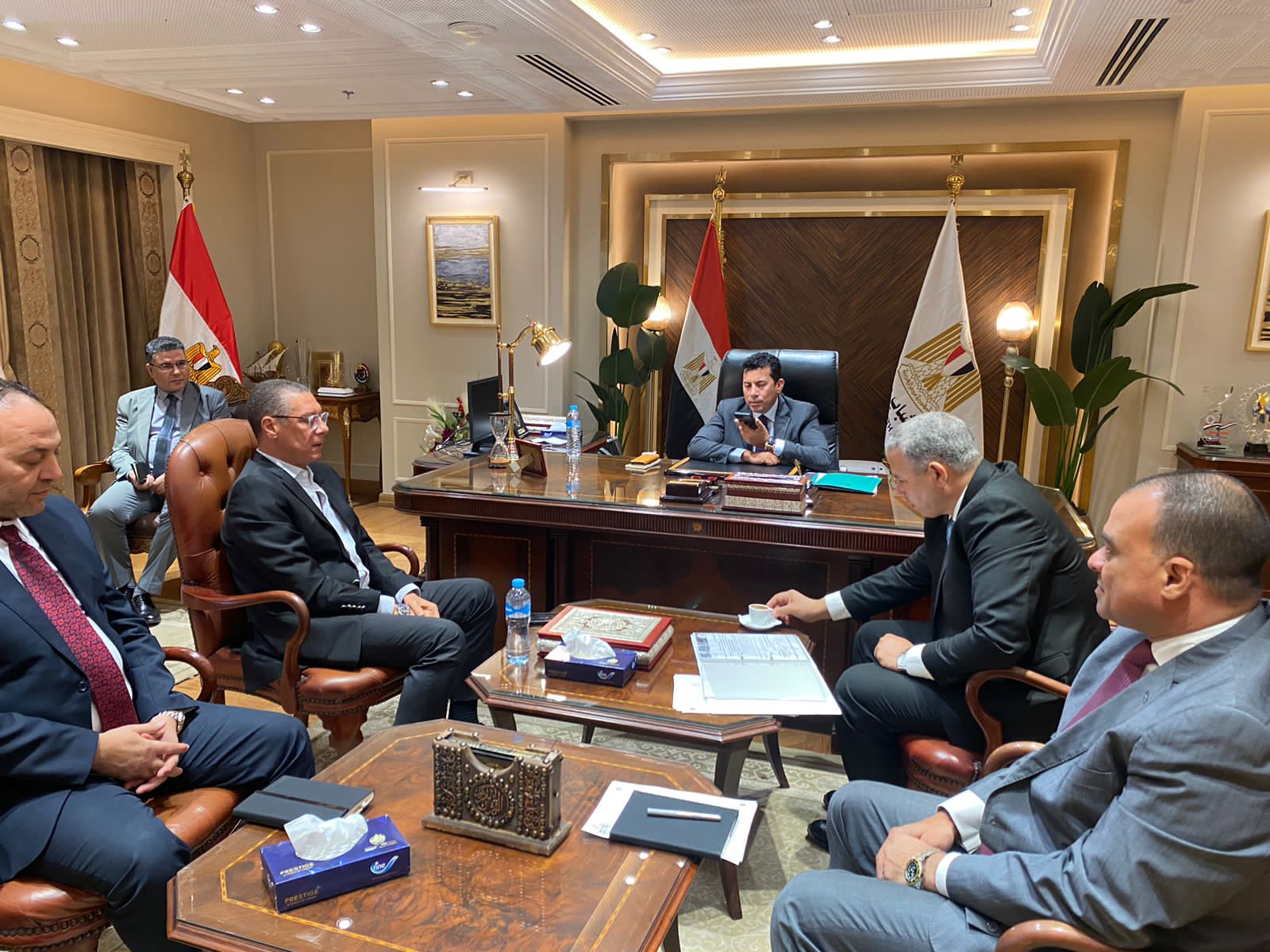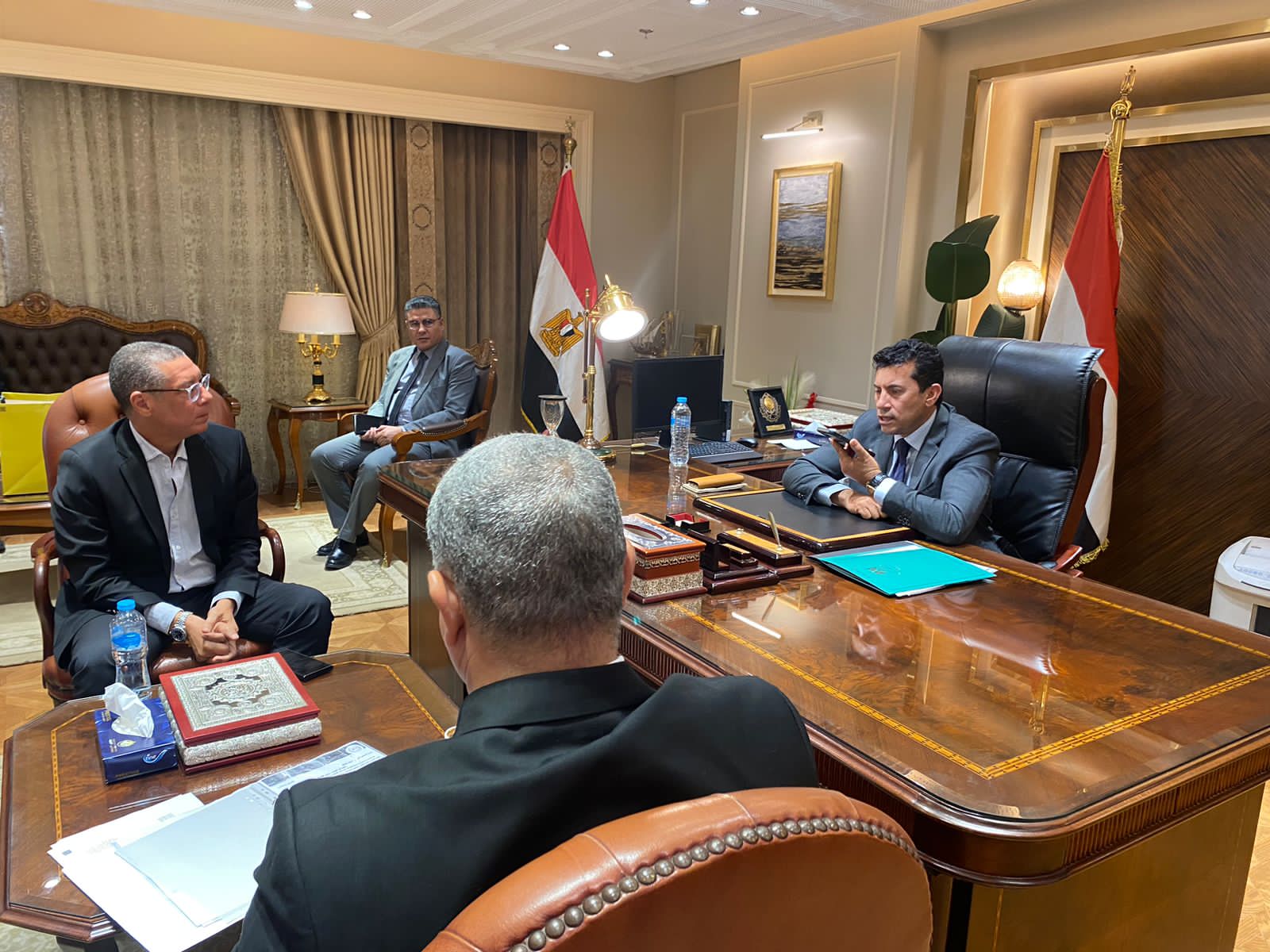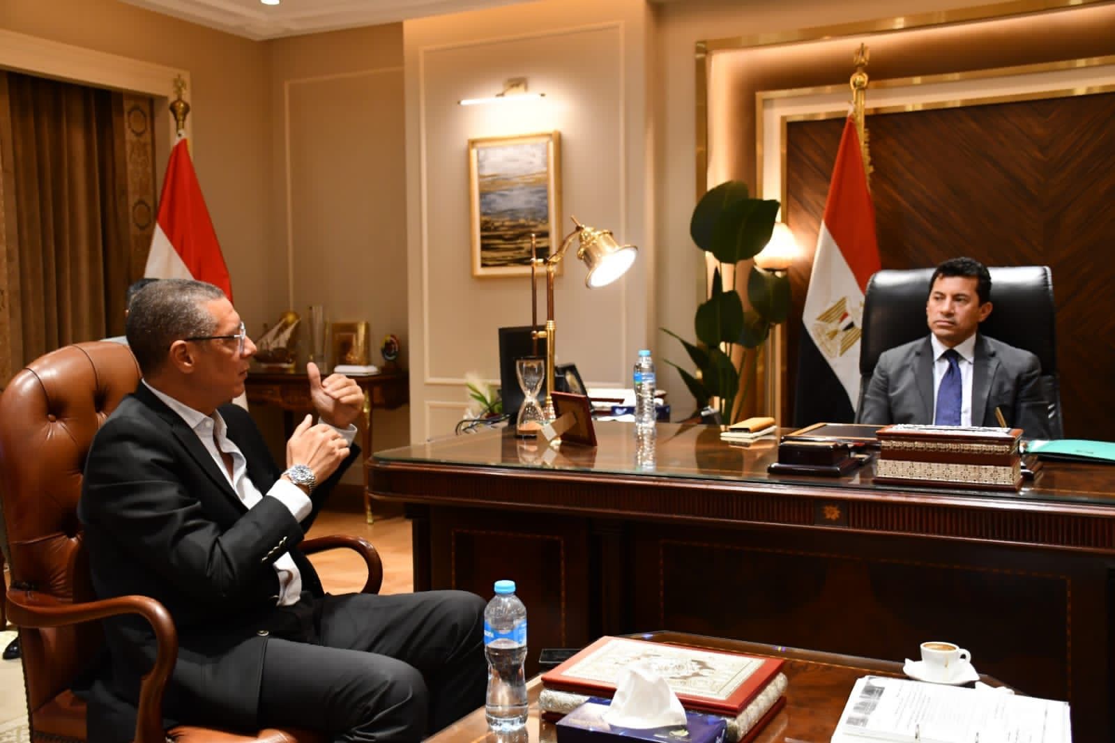 وزير الرياضة يستقبل رئيس اتحاد الكرة الطائرة ويتواصل هاتفيًا مع بعثة منتخب الشباب لمؤازرتهم