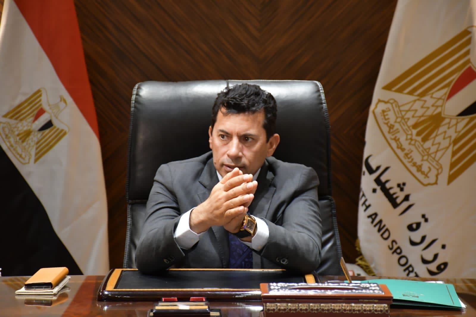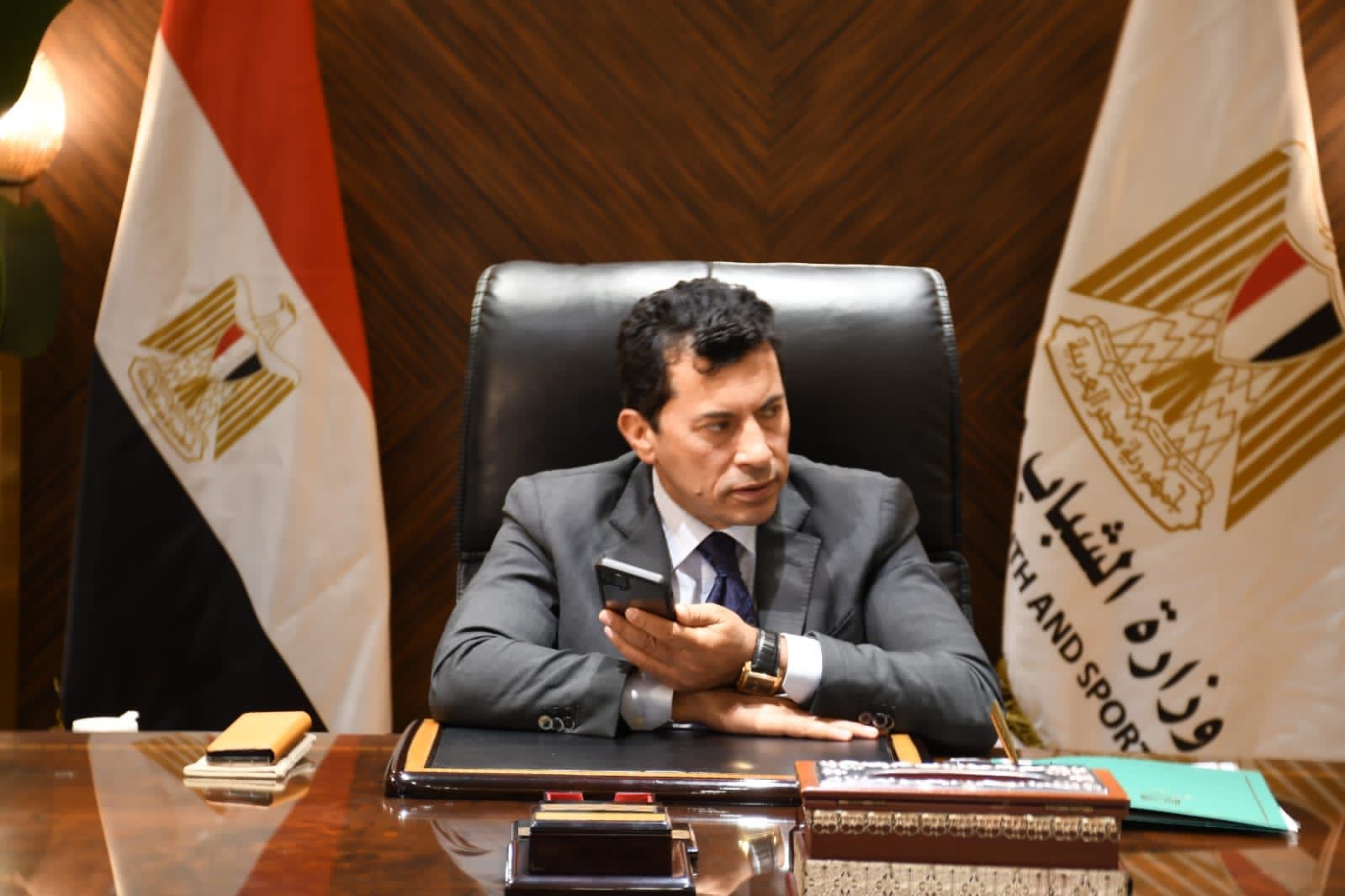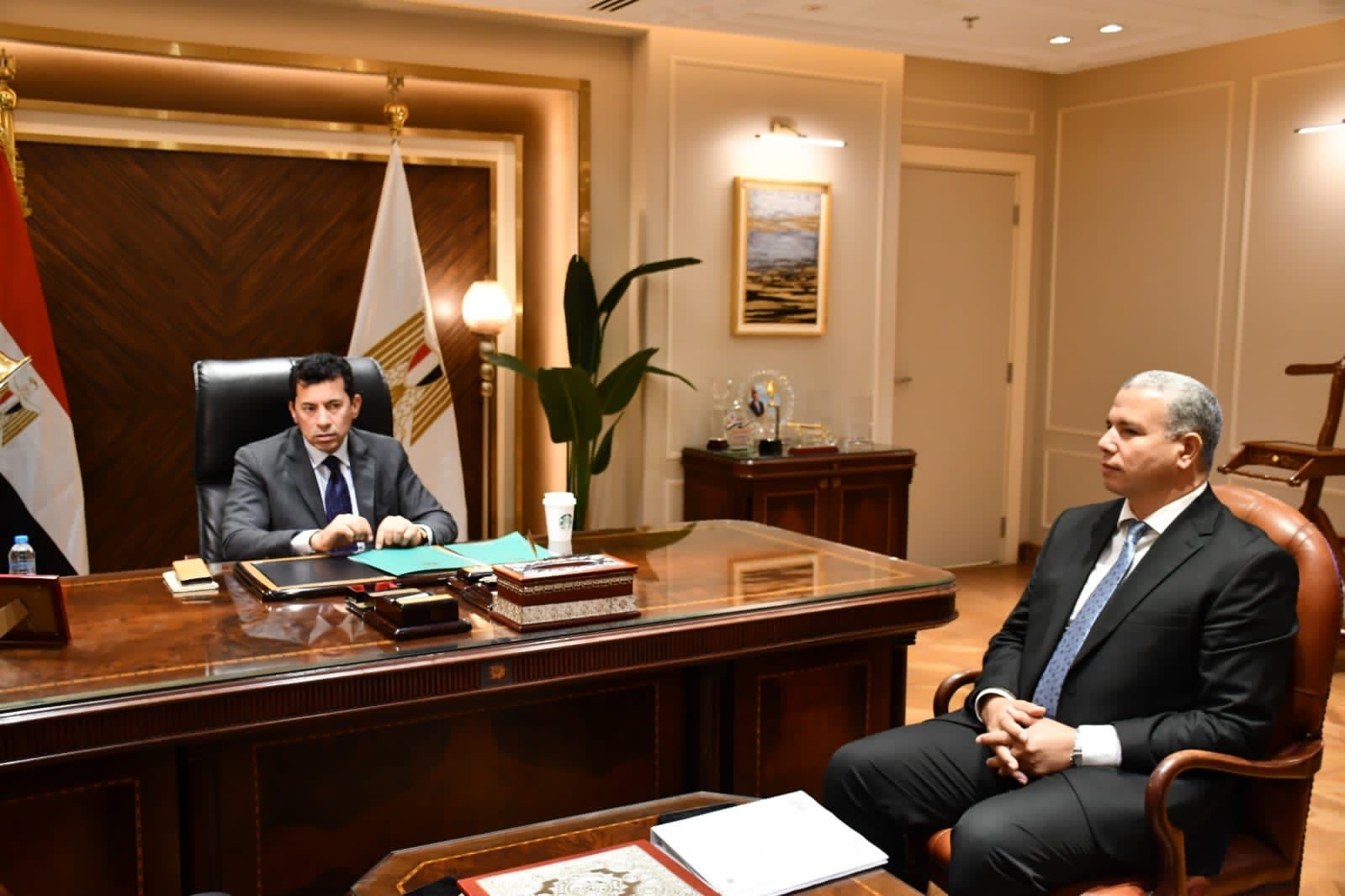 وزير الرياضة يستقبل رئيس اتحاد الكرة الطائرة ويتواصل هاتفيًا مع بعثة منتخب الشباب لمؤازرتهم